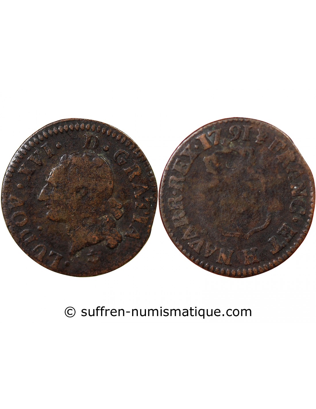 LOUIS XVI - LIARD A L'ECU 1791 H LA ROCHELLE