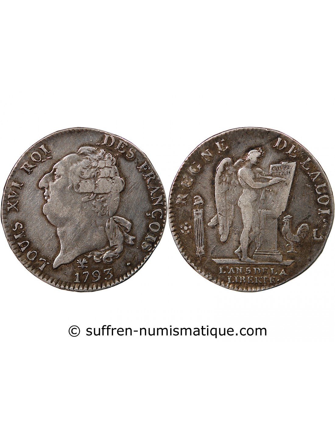 Louis XVI 1 ecu Argent 1793 L Bayonne