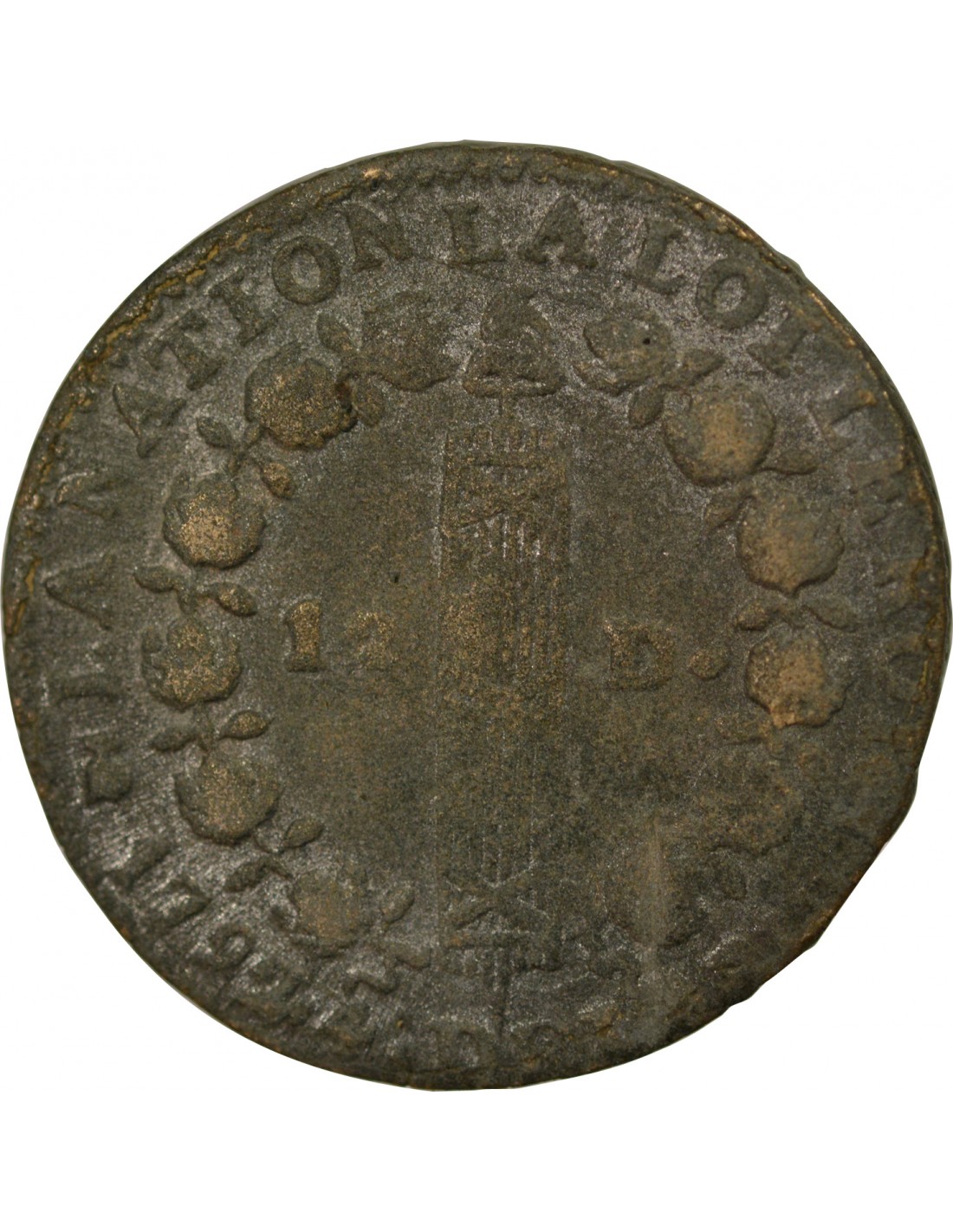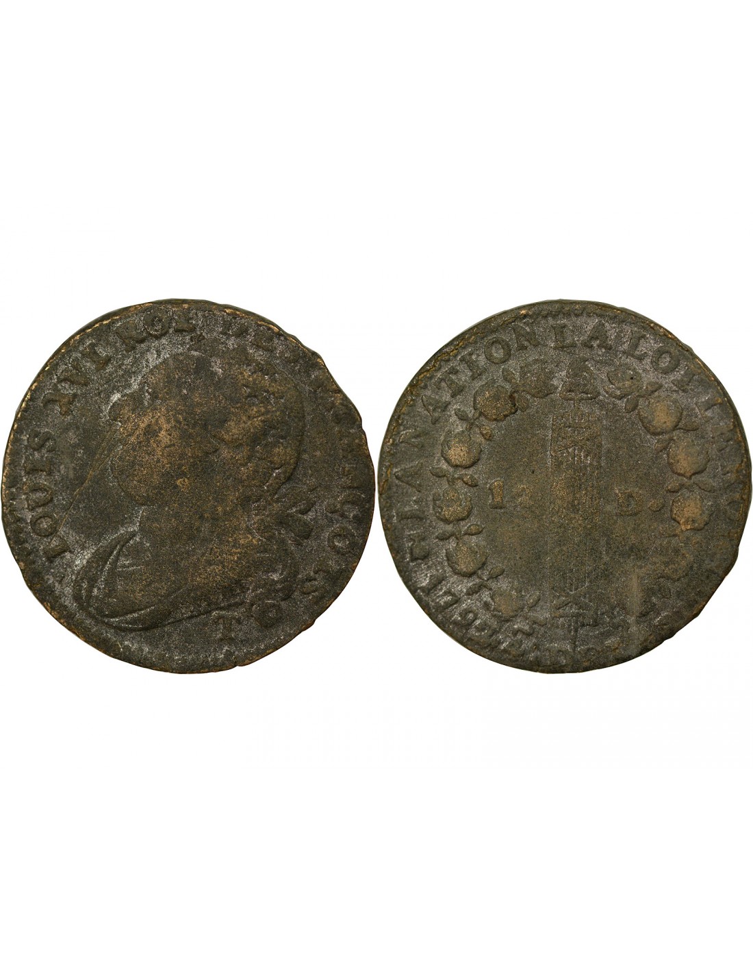 France Louis XVI, Constitution - 12 Deniers 1792 T Nantes