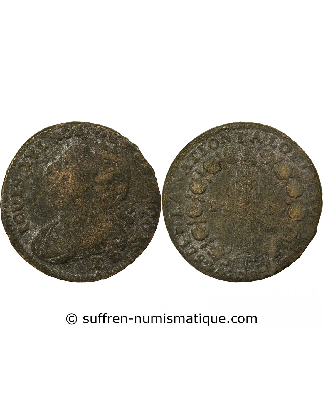 LOUIS XVI, CONSTITUTION - 12 DENIERS 1792 T NANTES