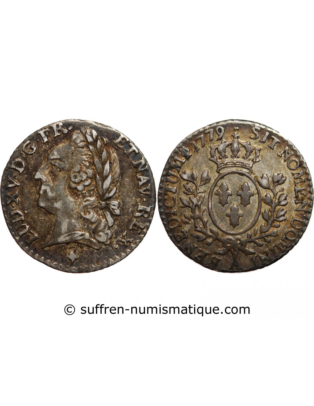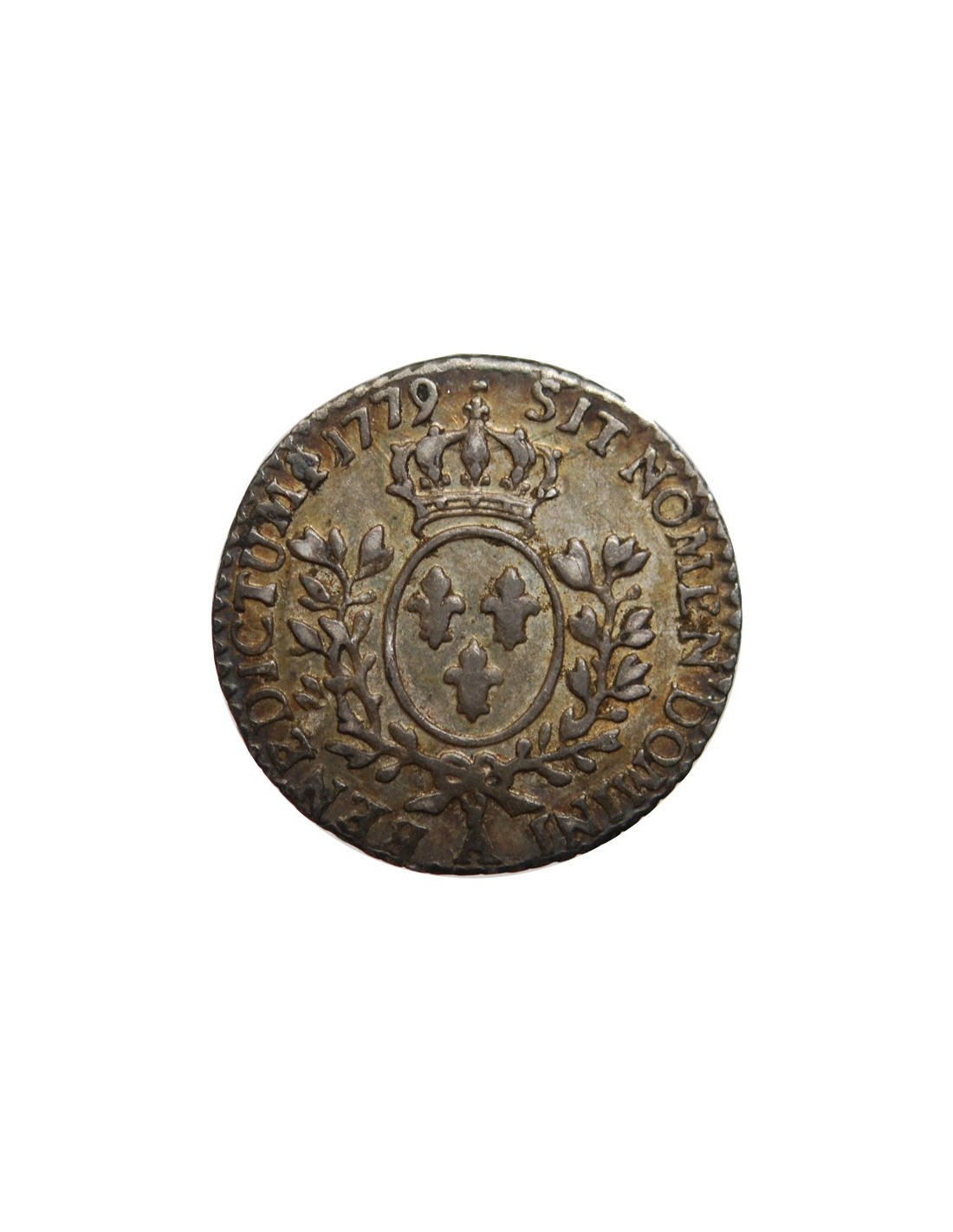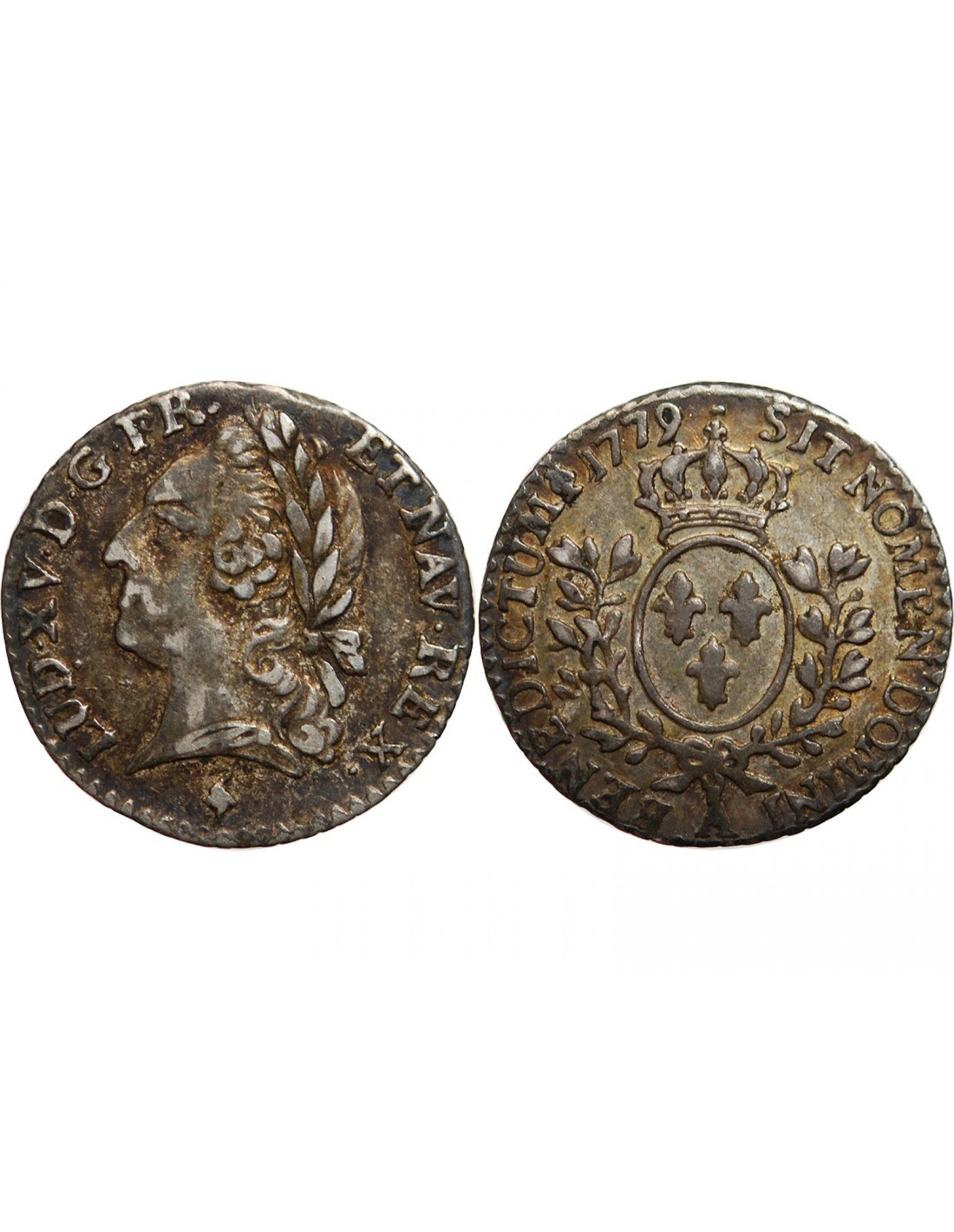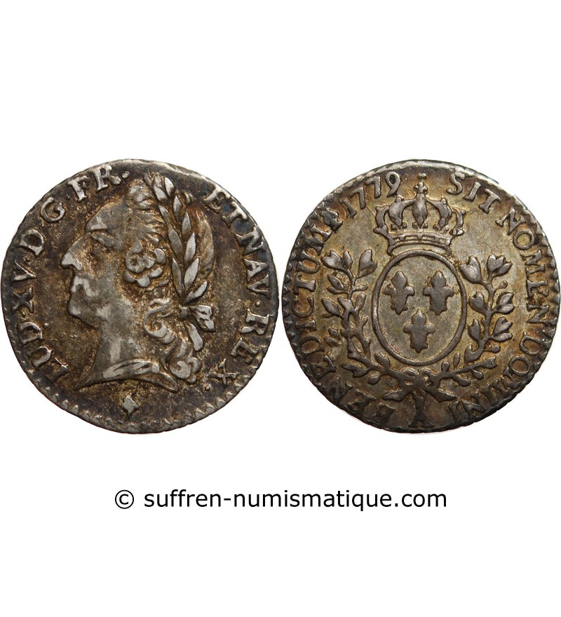Les nouvelles matrices à l'effigie de LOUIS XVI n'étant pas prêtes le Roi par lettres patentes du 22 août 1779 autorisa l'atelier de PARIS en raison du manque de petite monnaie à se servir des poinçons encore existants à l'effigie de Louis XV. Seul le millésime fut changé.