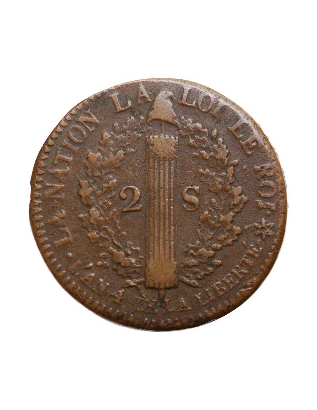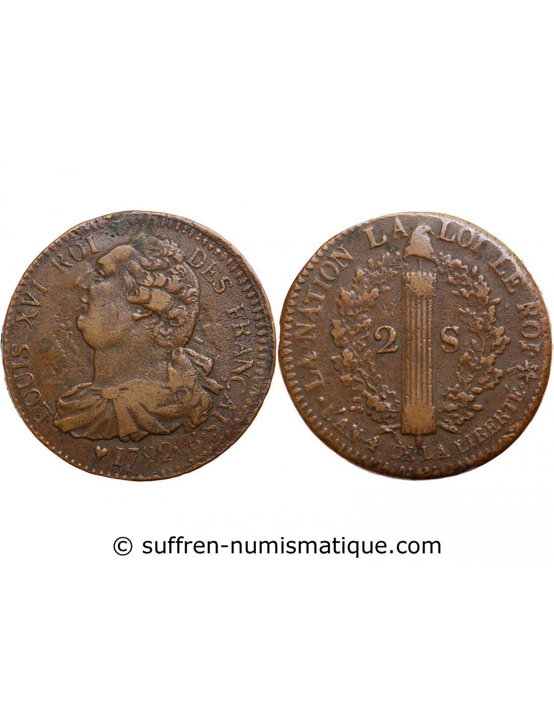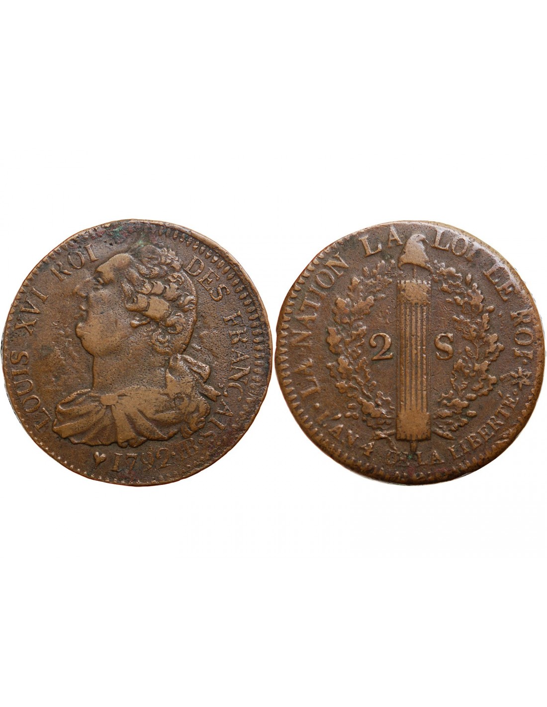 REVOLUTION FRANCAISE CONSTITUTION - 2 SOLS ROI DES FRANCAIS 1792 BB STRASBOURG