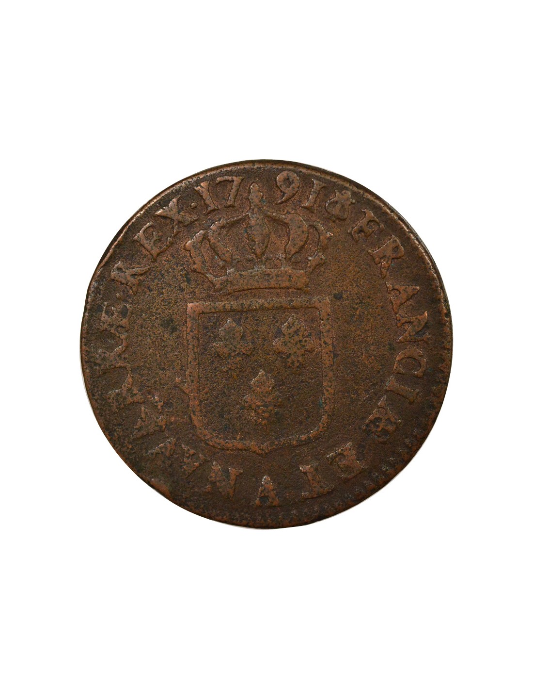 France Louis XVI - Sol, à l'Ecu - 1791 A Paris