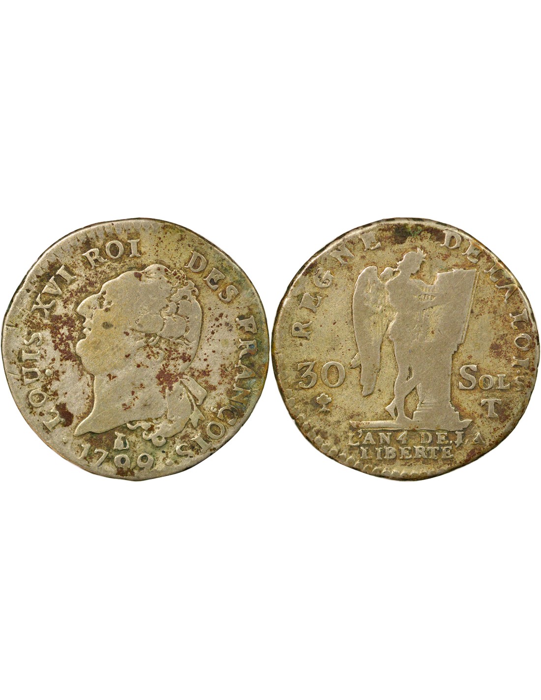France Louis XVI, Constitution - 30 Sols au Génie - 1792 T Nantes