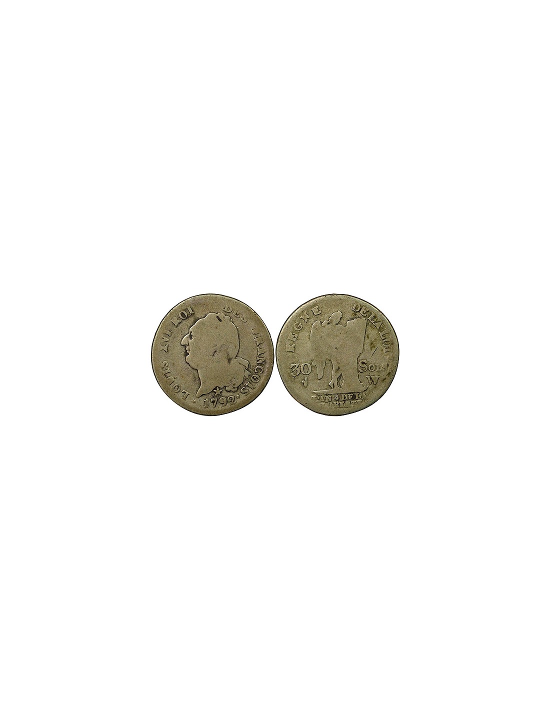 Louis XVI au Génie 30 sols Argent 1792 W Lille