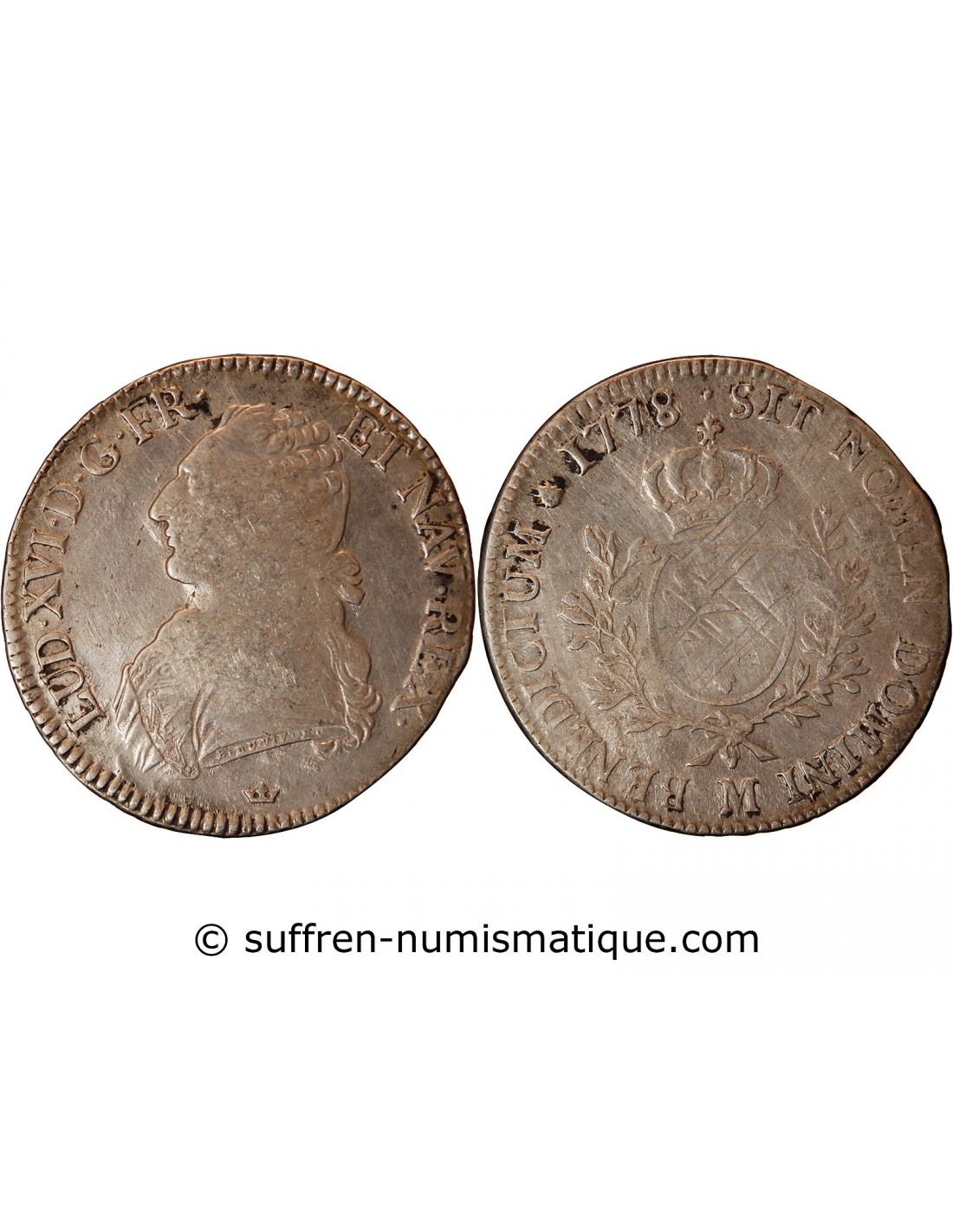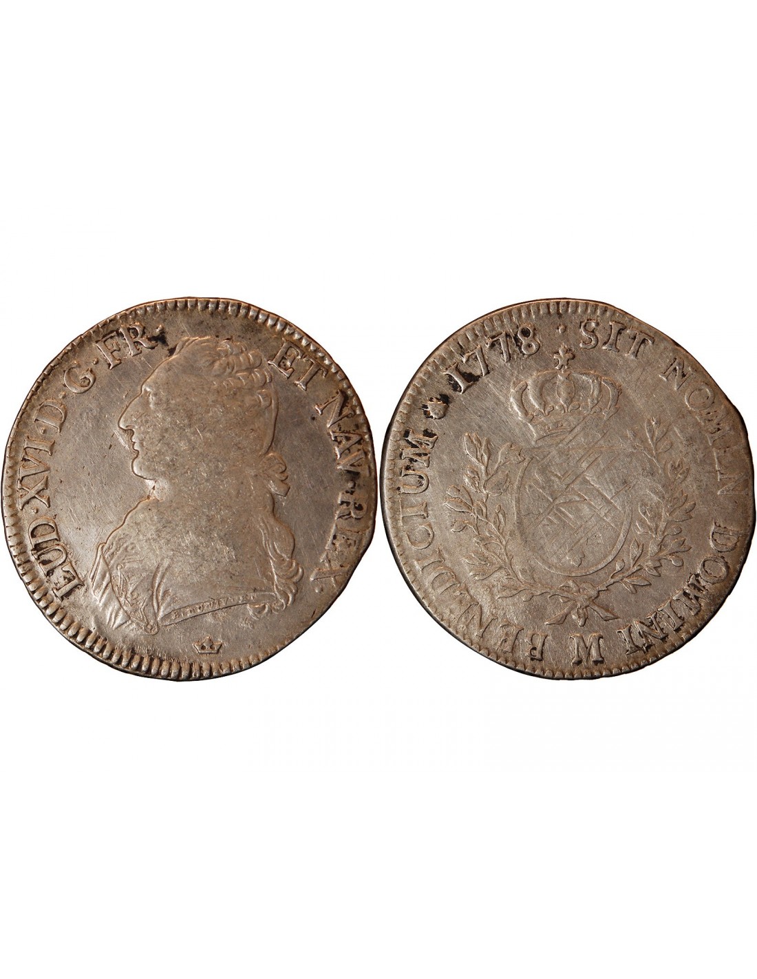 LOUIS XVI - ECU AUX BRANCHES D'OLIVIER 1778 M TOULOUSE R1