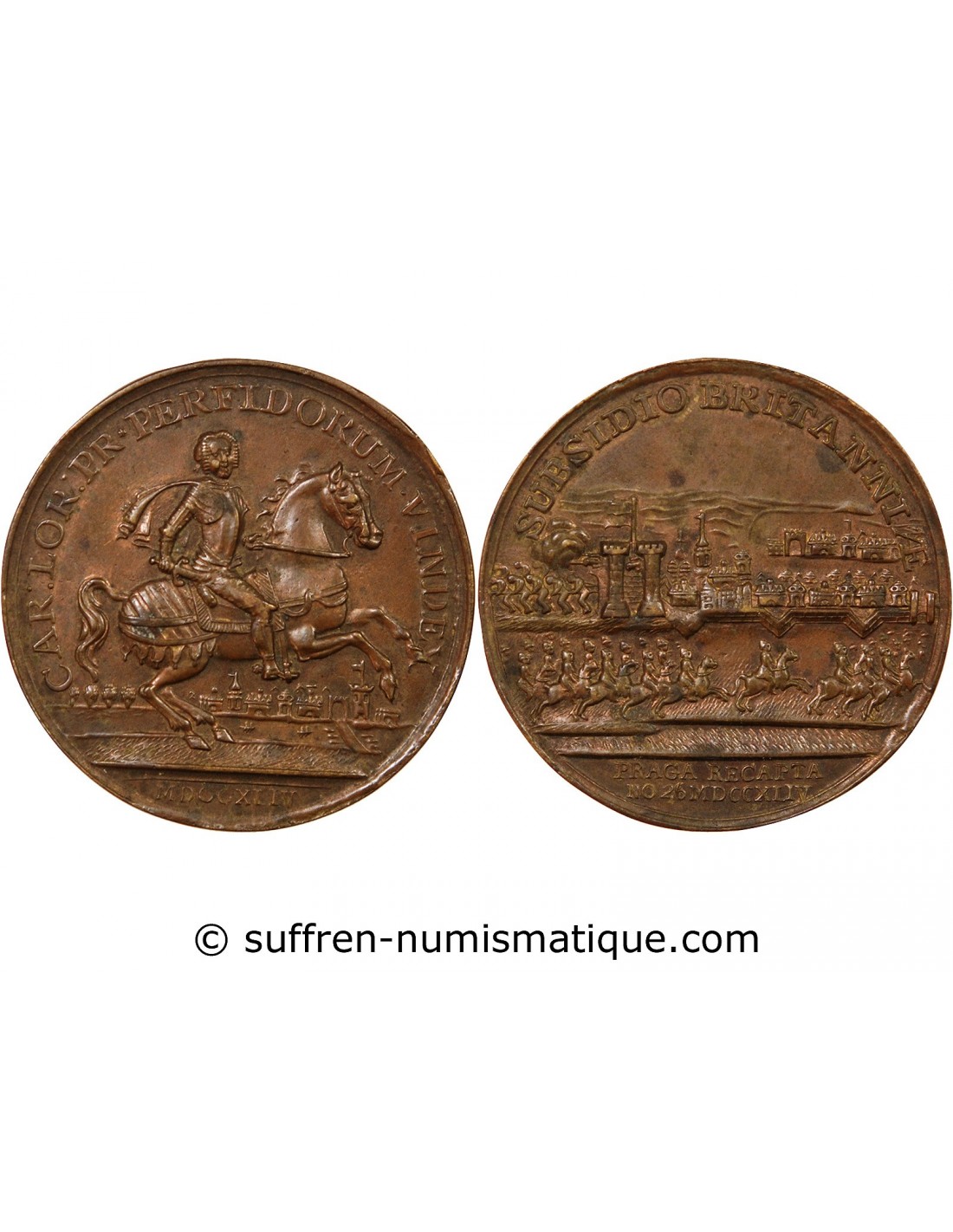 CHARLES-ALEXANDRE DE LORRAINE - MÉDAILLE BRONZE 1744 - RECONQUÊTE DE PRAGUE