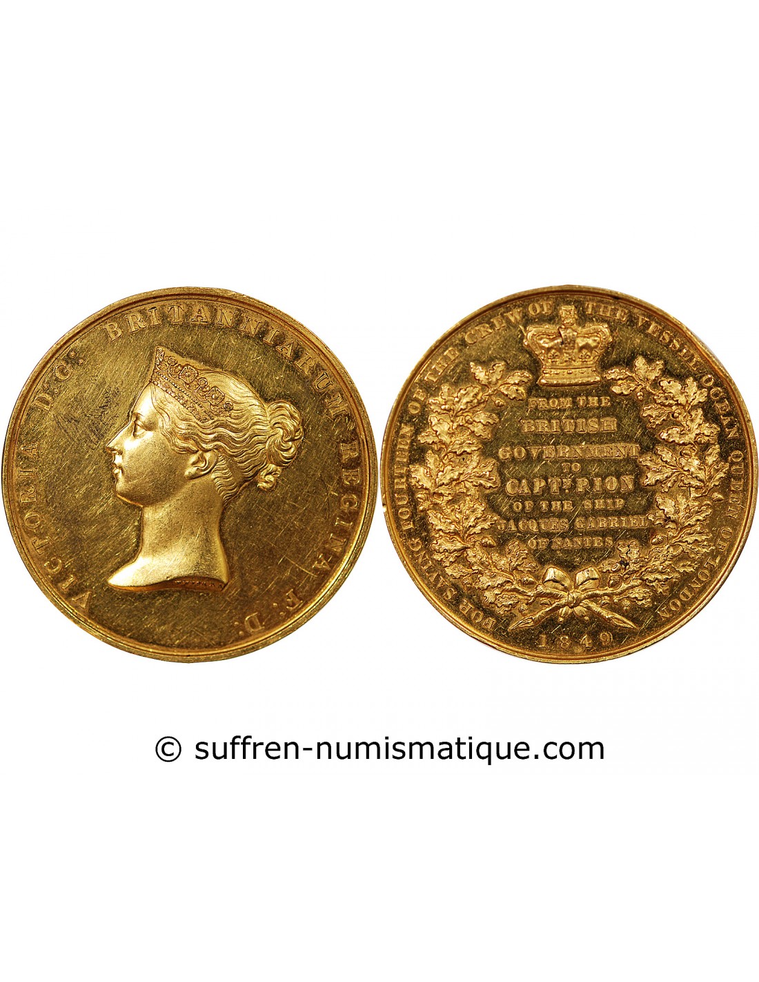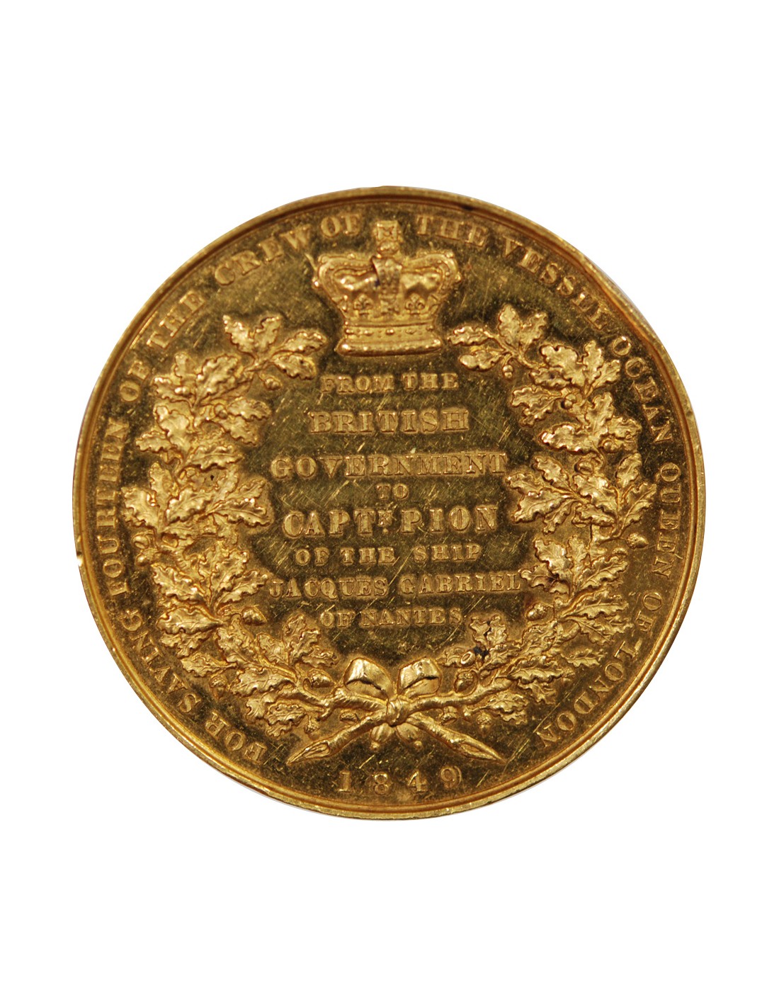 Offert par le Gouvernement Britannique en remerciement à M. Pion, capitaine du Trois Mâts nantais "Le Jacques Gabriel" (1846-1862), pour avoir recueilli une partie de l’équipage de l’Ocean Queen, navire qui fit naufrage au large des côtes de Madagascar des suites d’un incendie.