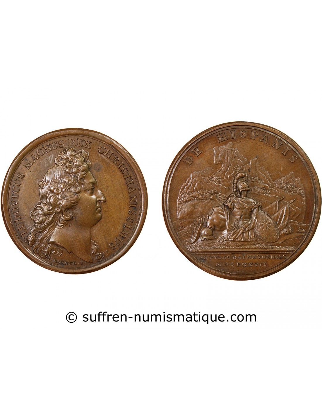 LOUIS XIV - MÉDAILLE MAUGER 1677 - Défaite des Espagnols en Catalogne