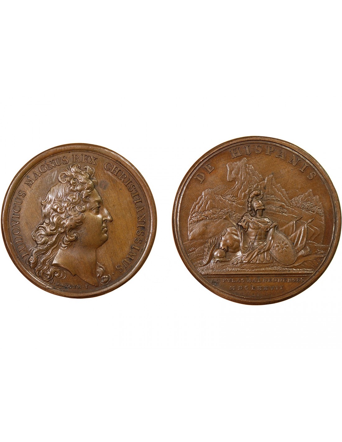 France Louis XIV - Médaille Mauger 1677 - Défaite des Espagnols en Catalogne