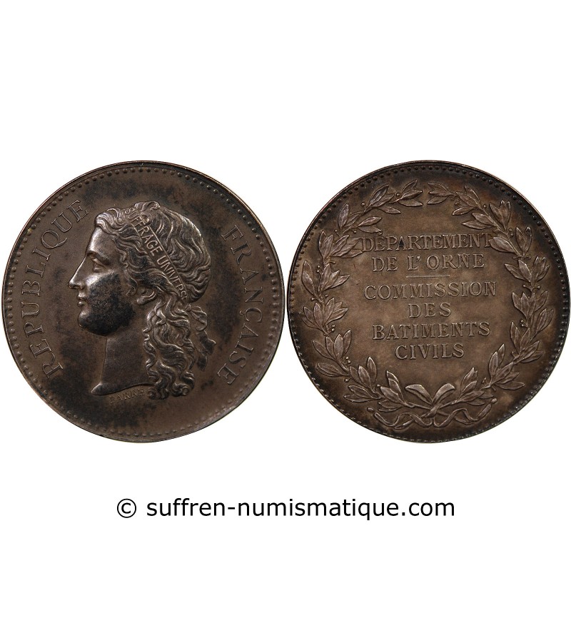 Revers : DÉPARTEMENT / DE L'ORNE / COMMISSION / DES / BATIMENTS / CIVILS