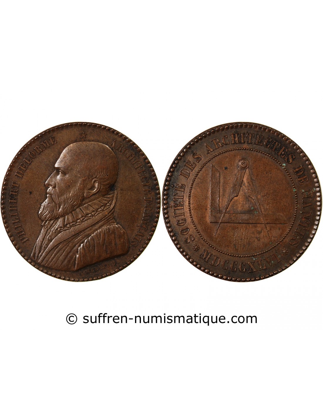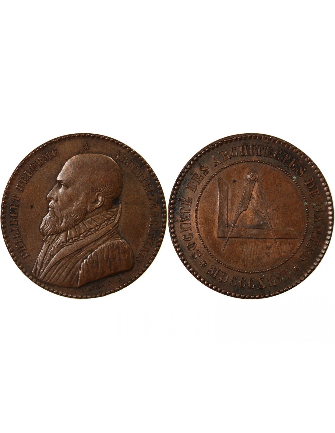 ARCHITECTES DE NANTES, PHILIBERT DELORME - MEDAILLE CUIVRE poinçon Abeille (1860 /1879)