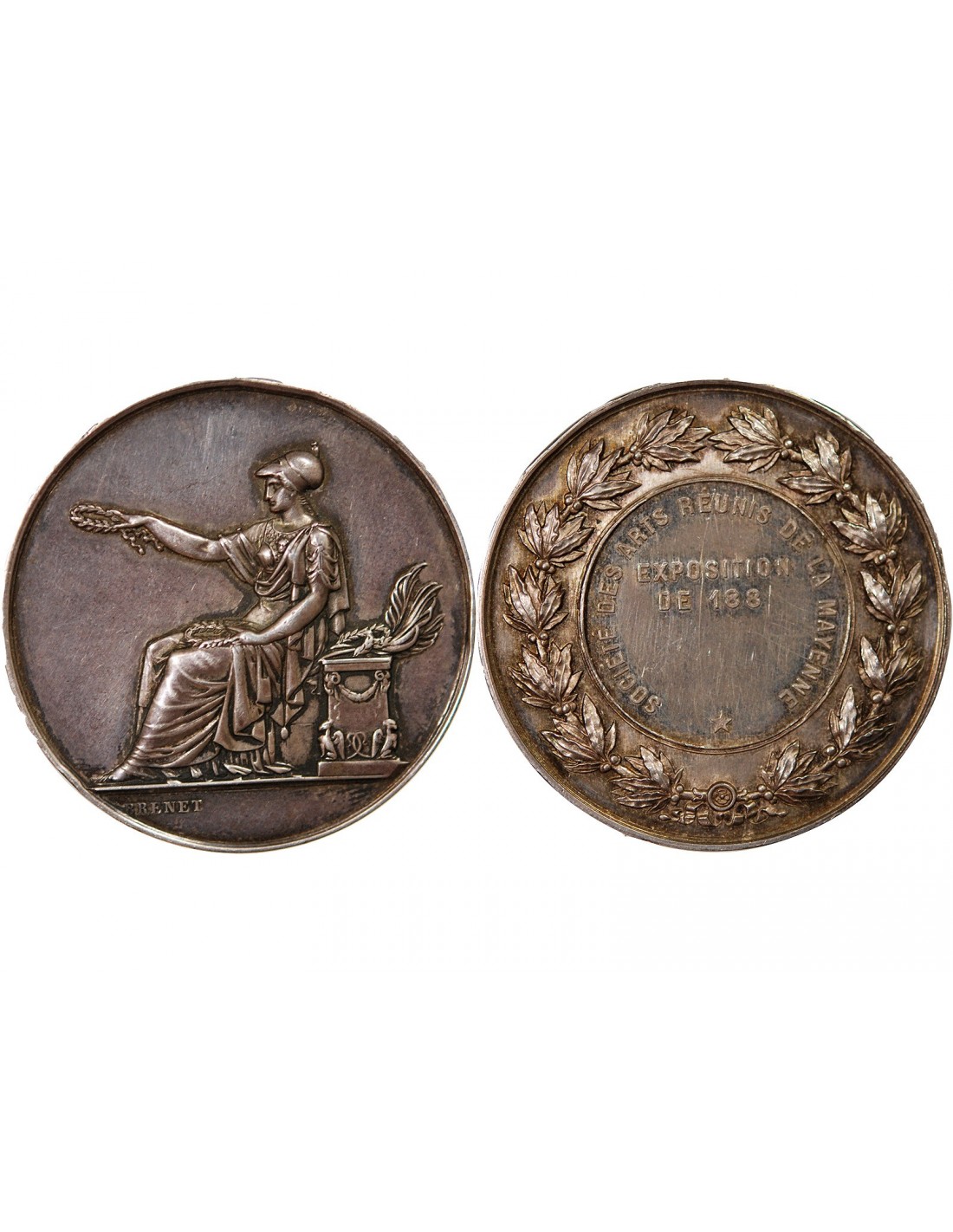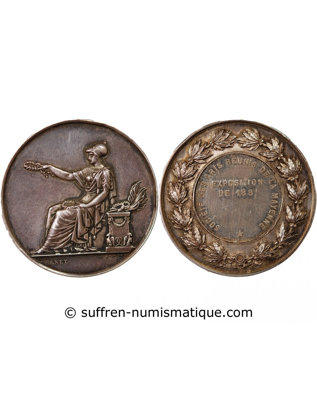SOCIETE DES ARTS REUNIS DE LA MAYENNE - MEDAILLE ARGENT Poinçon Corne (après 1879)