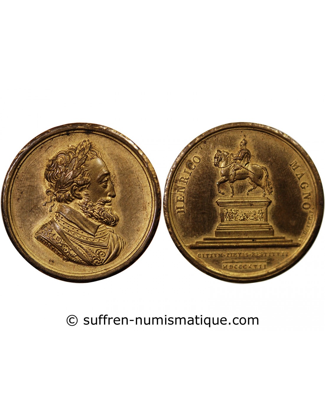 LOUIS XVIII, STATUE D'HENRI IV - MEDAILLE CUIVRE poinçon Corne (après 1879)