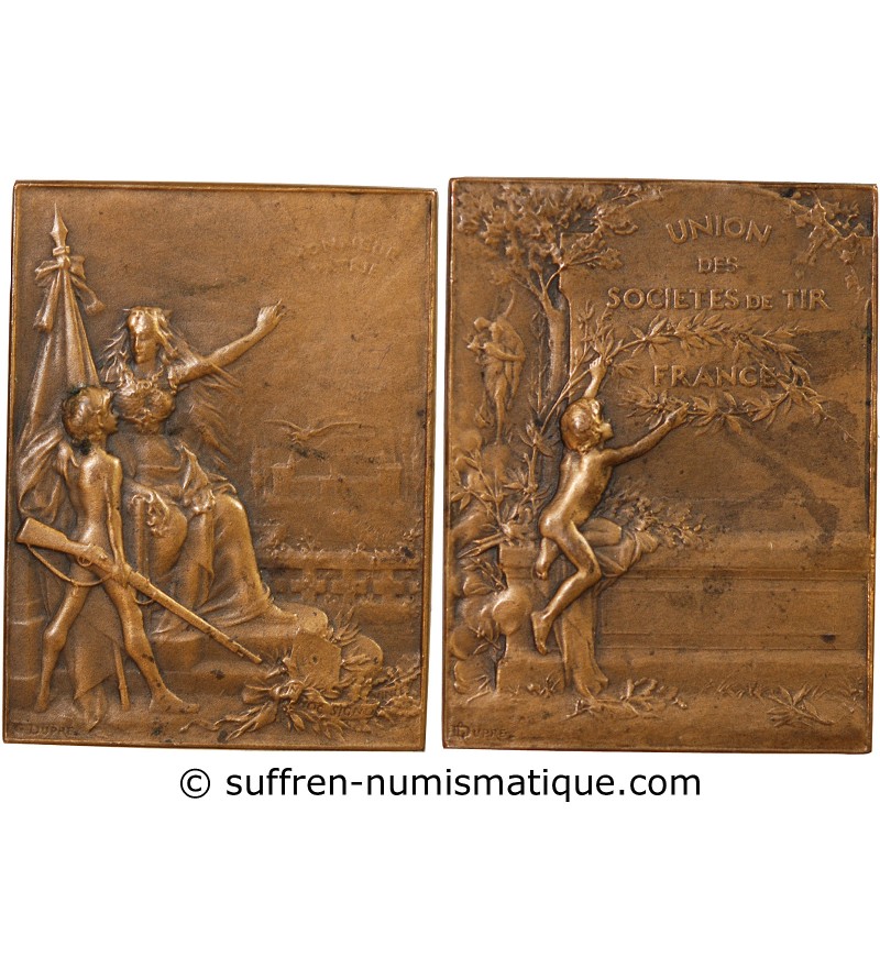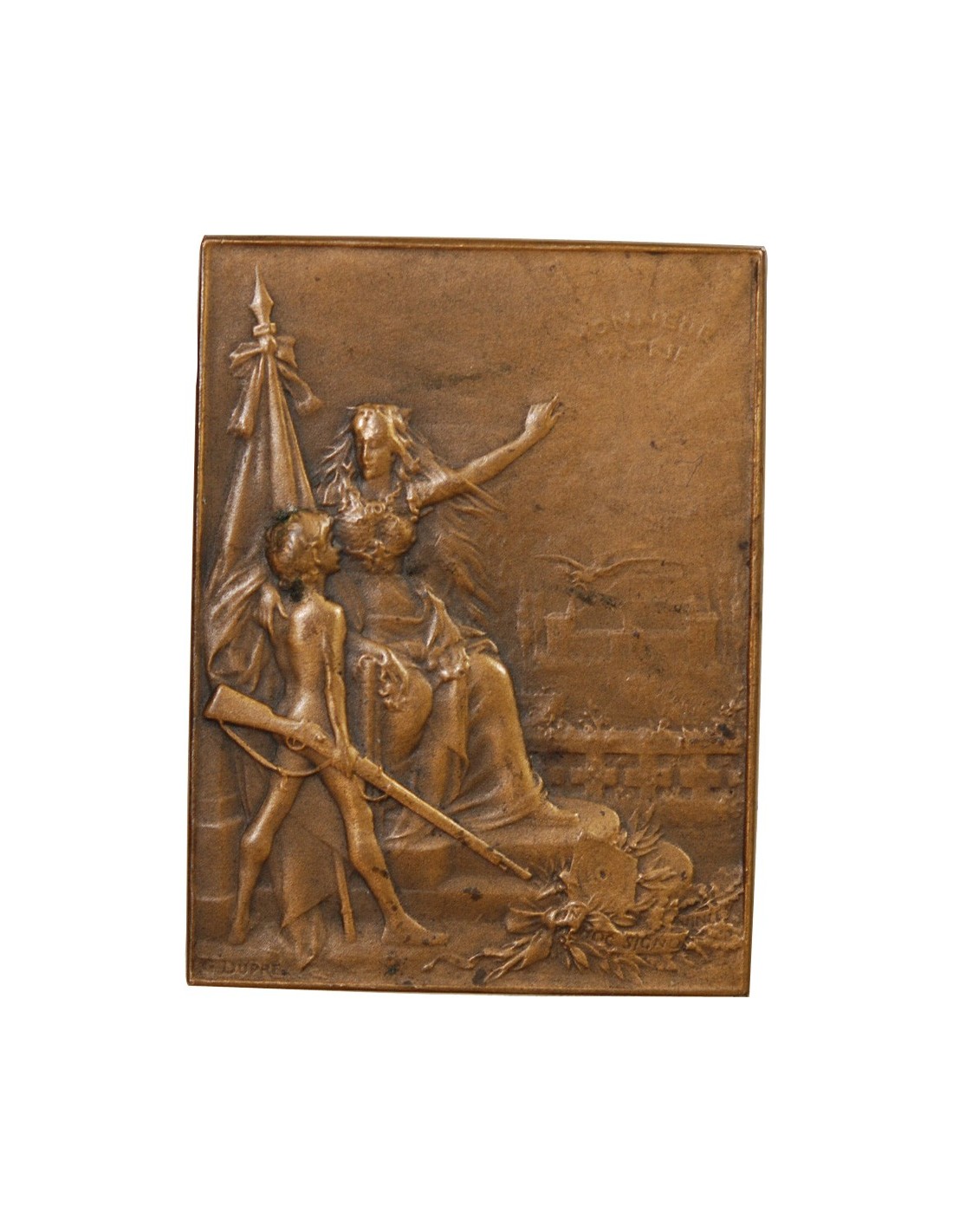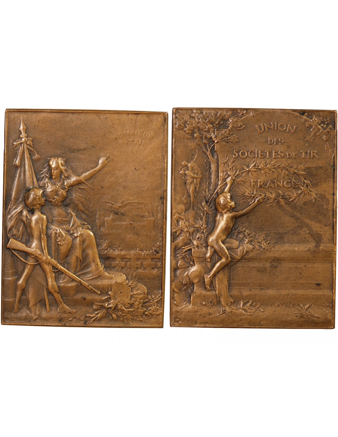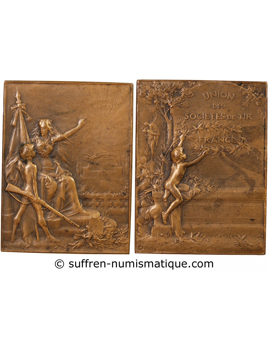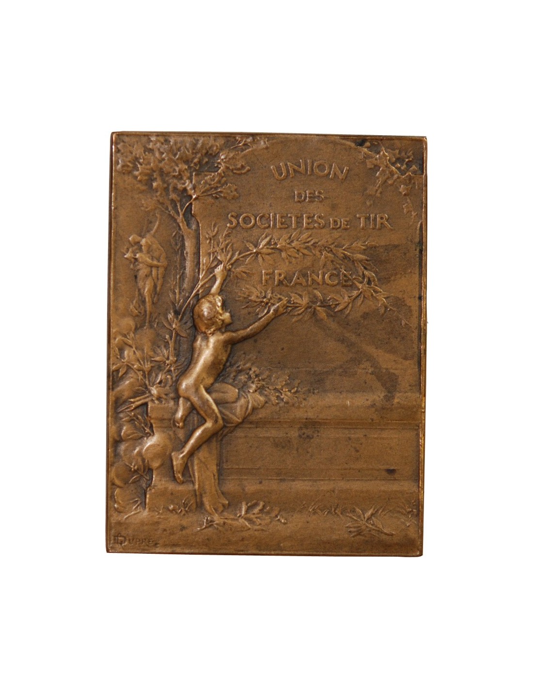 UNION DES SOCIÉTÉS DE TIR DE FRANCE - PLAQUE BRONZE poinçon Corne (après 1879)