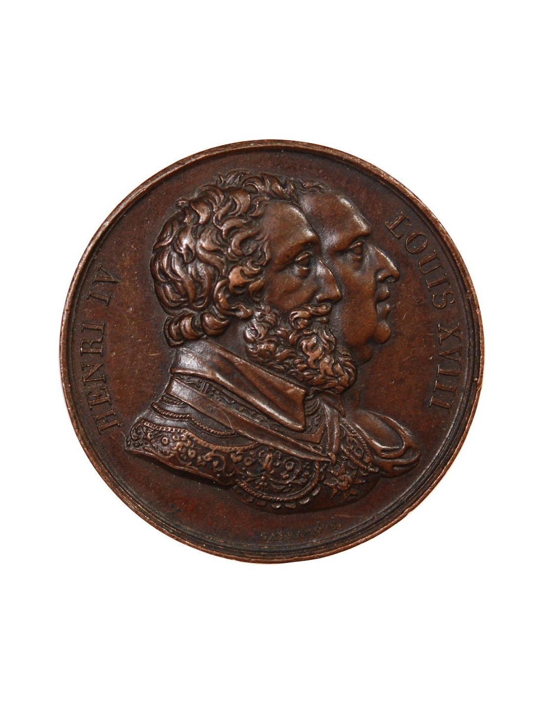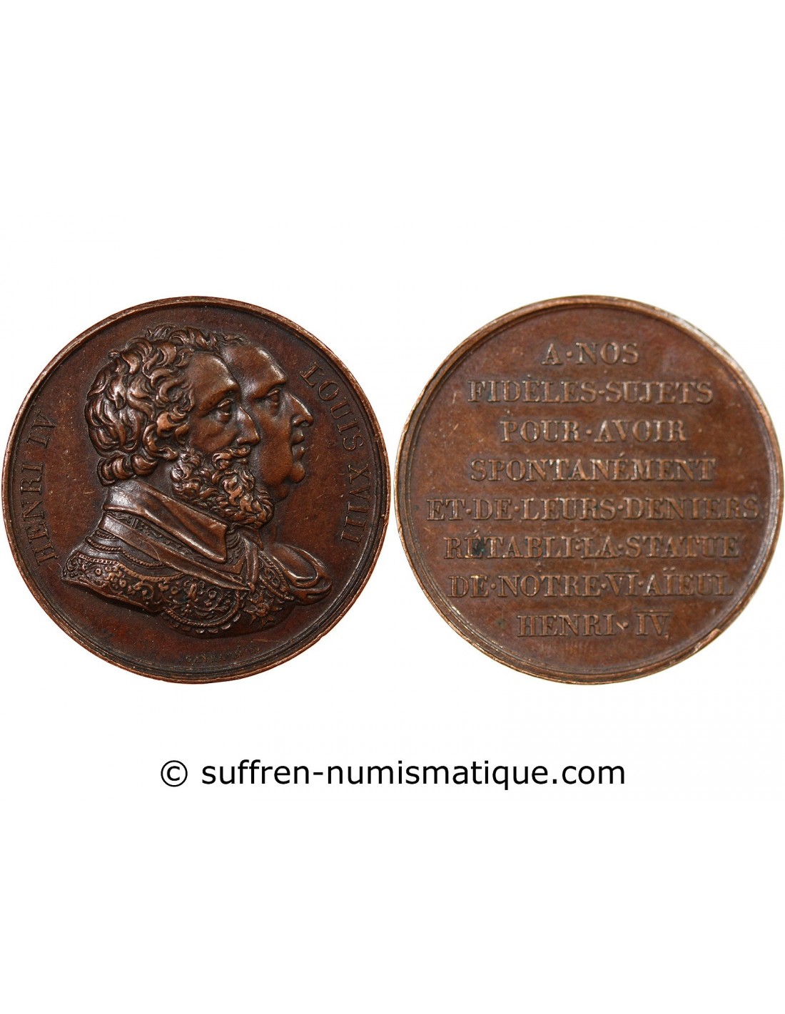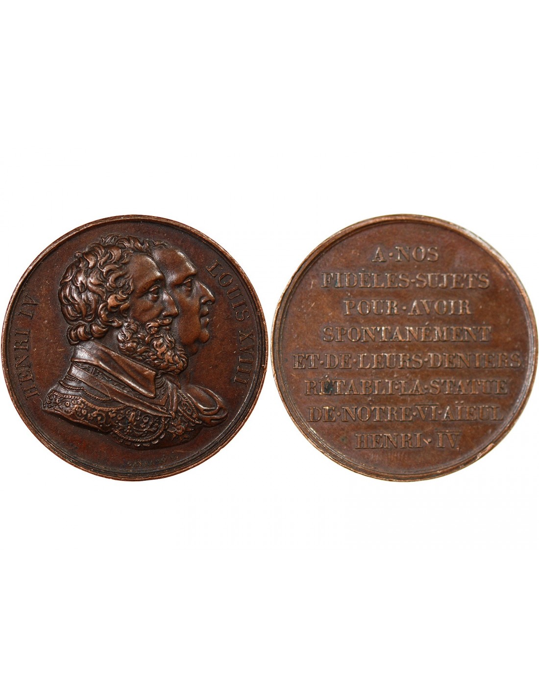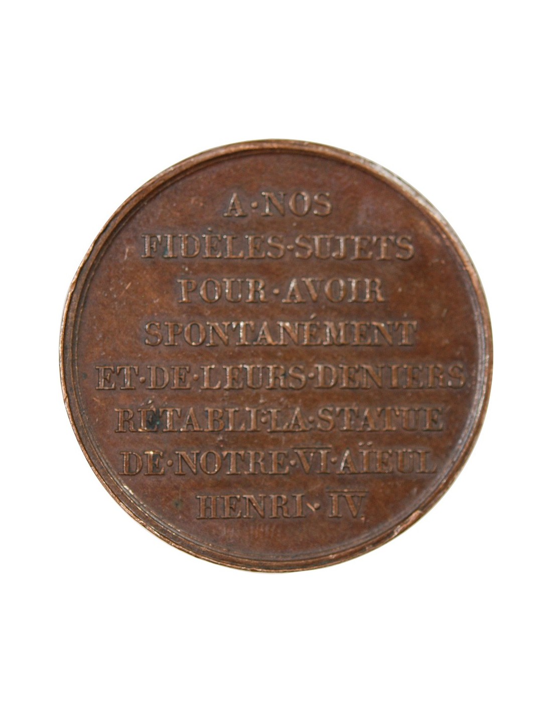 LOUIS XVIII, RETABLISSEMENT DE LA STATUE D'HENRI IV - MEDAILLE CUIVRE 1817