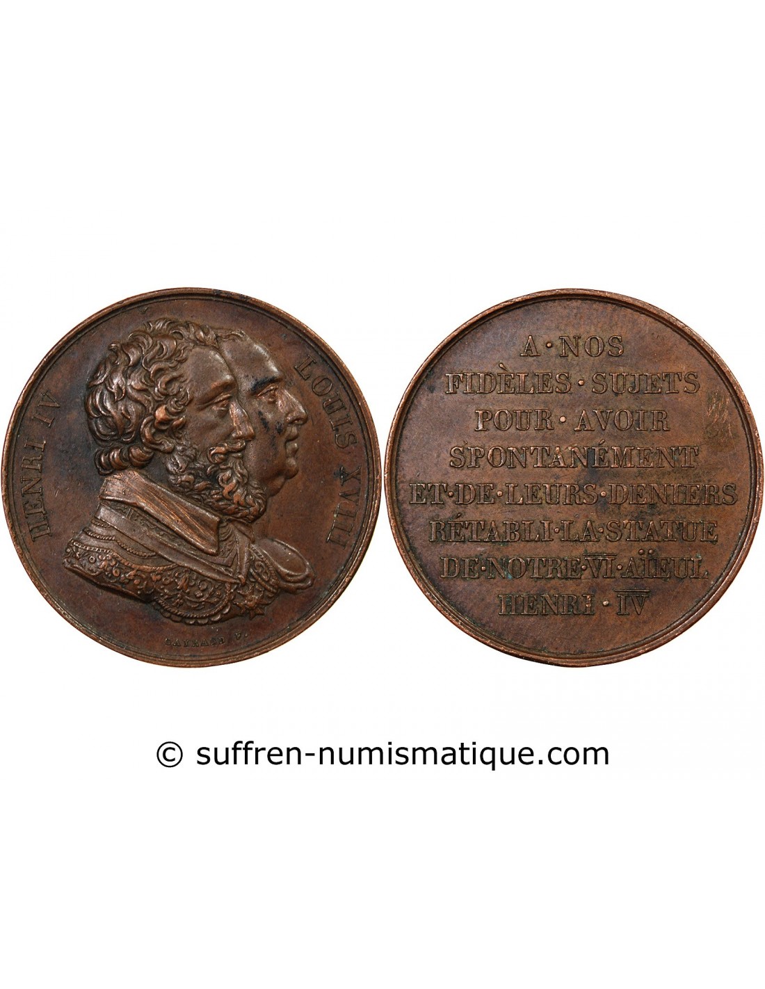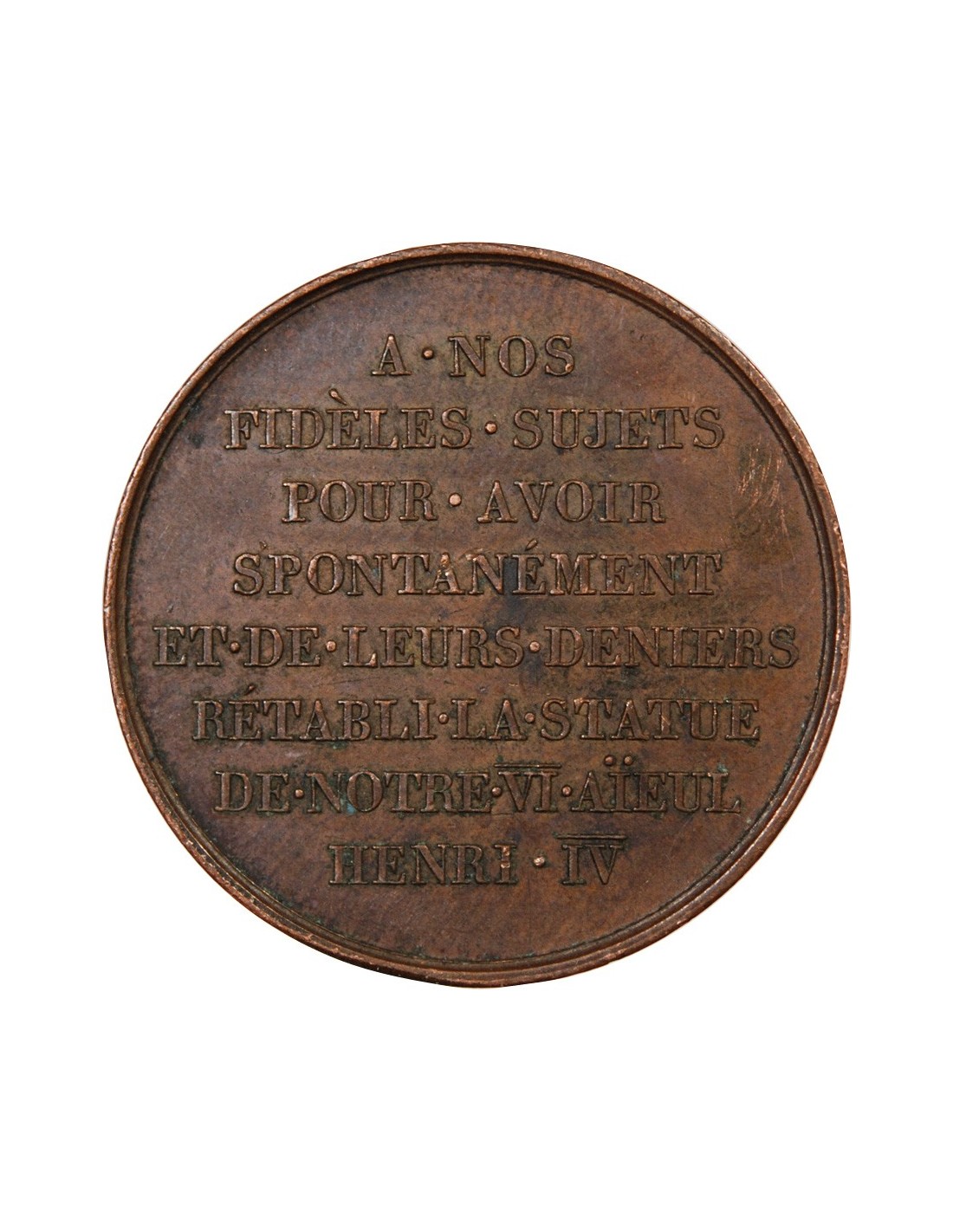 LOUIS XVIII, RETABLISSEMENT DE LA STATUE D'HENRI IV - MEDAILLE CUIVRE 1817