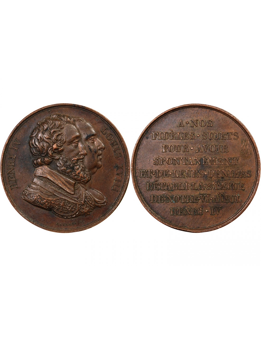 France Louis XVIII, Retablissement De La Statue D'Henri IV - Medaille Cuivre 1817