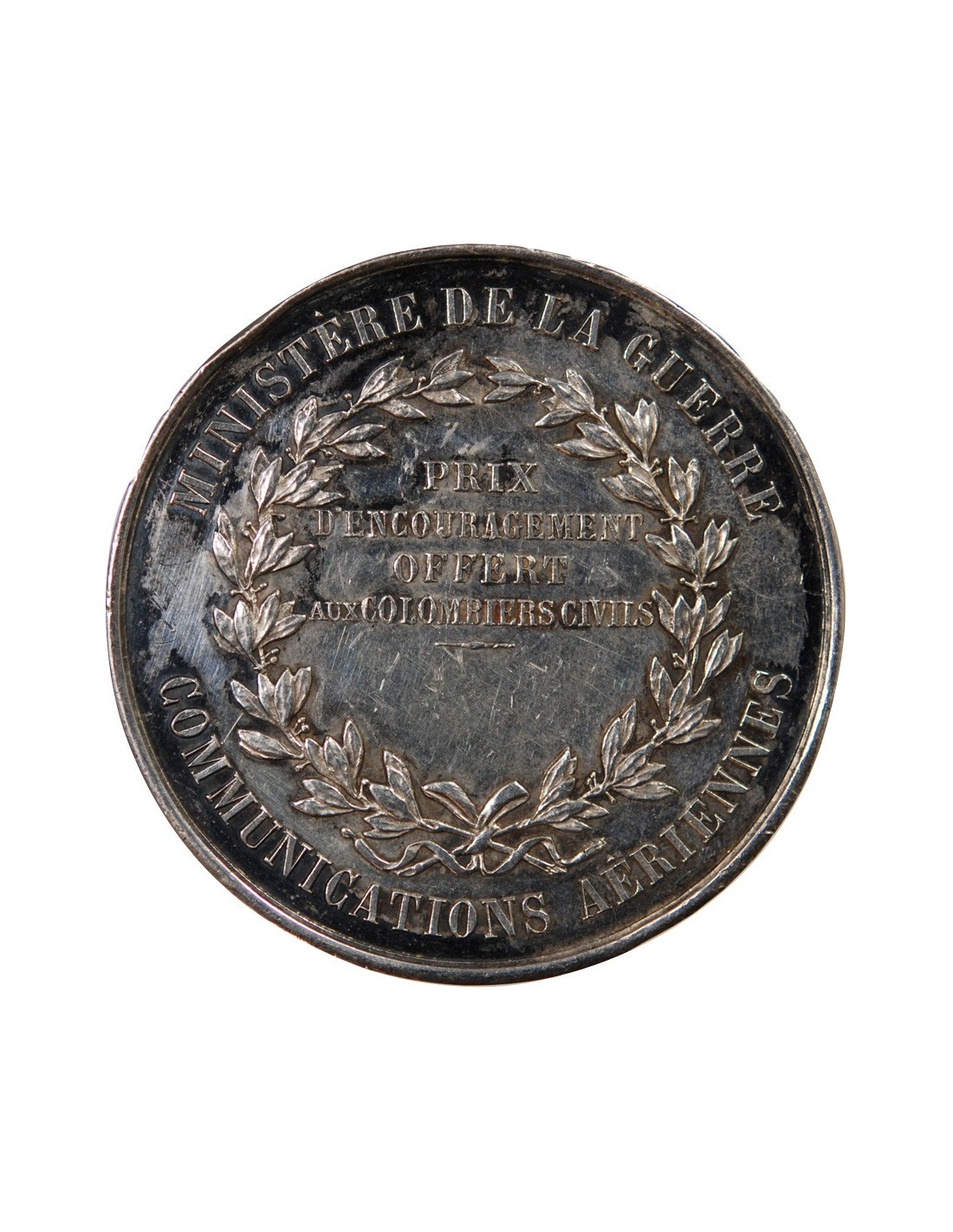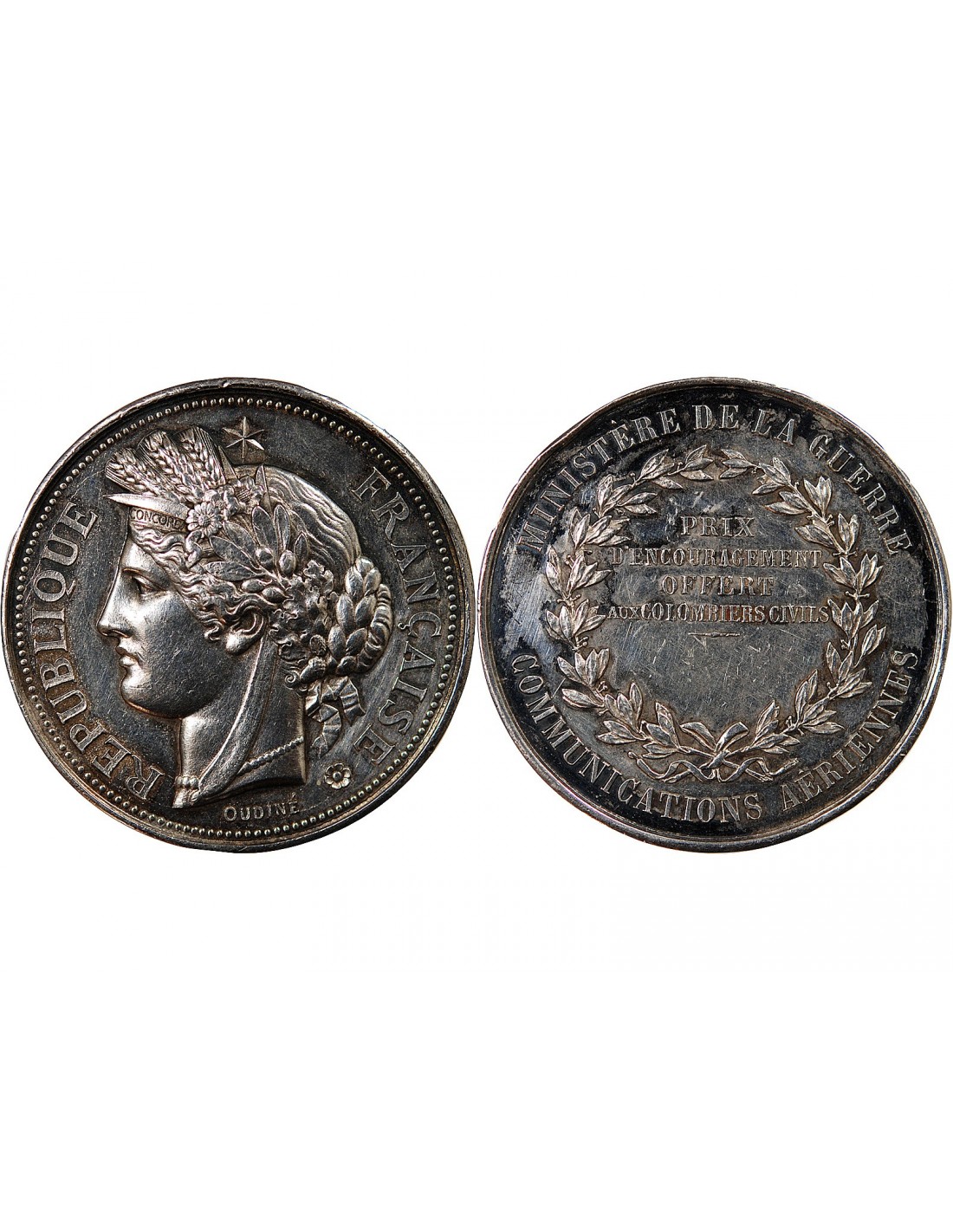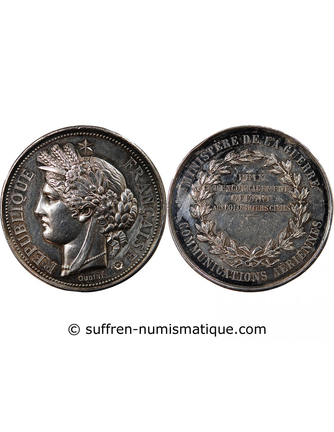 MINISTERE DE LA GUERRE, COMMUNICATIONS AERIENNES - MÉDAILLE ARGENT poinçon Corne (après 1879)