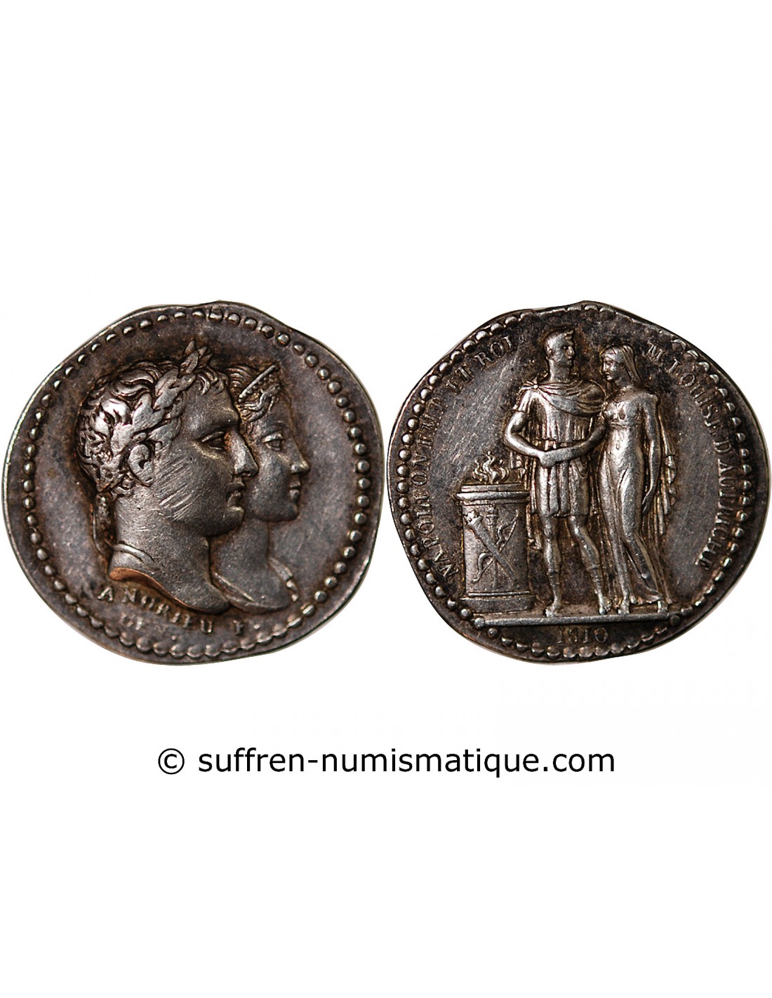 PREMIER EMPIRE - PETITE MEDAILLE ARGENT 1810 - Quinaire du mariage de Napoléon et Marie-Louise