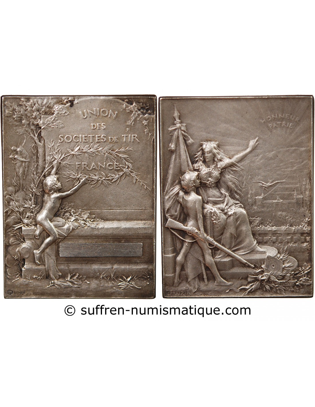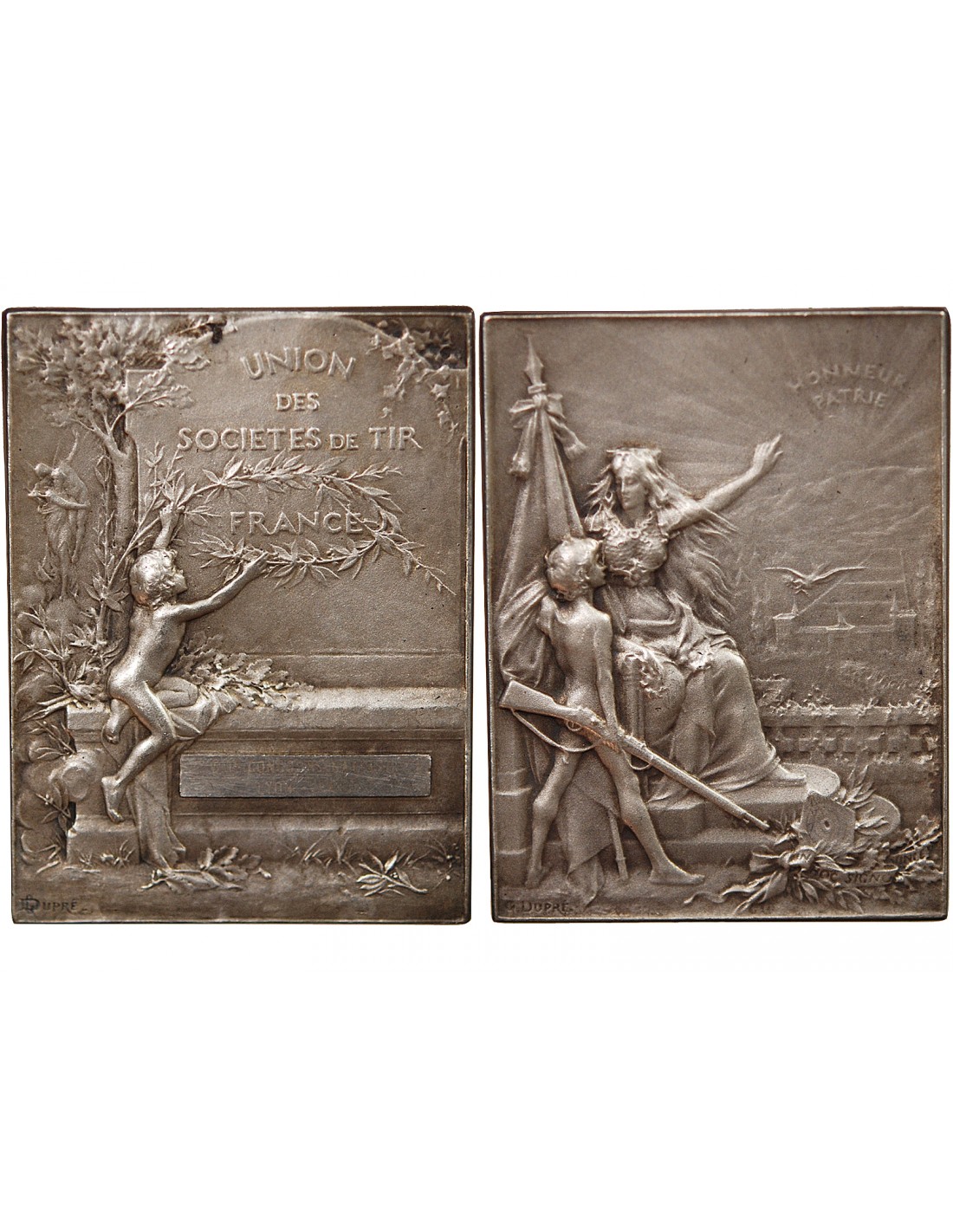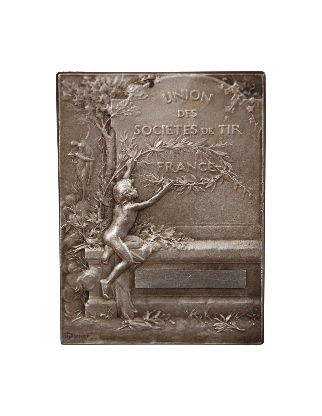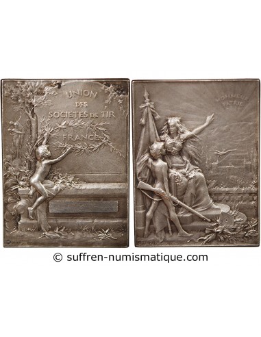 UNION DES SOCIÉTÉS DE TIR DE FRANCE - PLAQUE ARGENT poinçon Corne