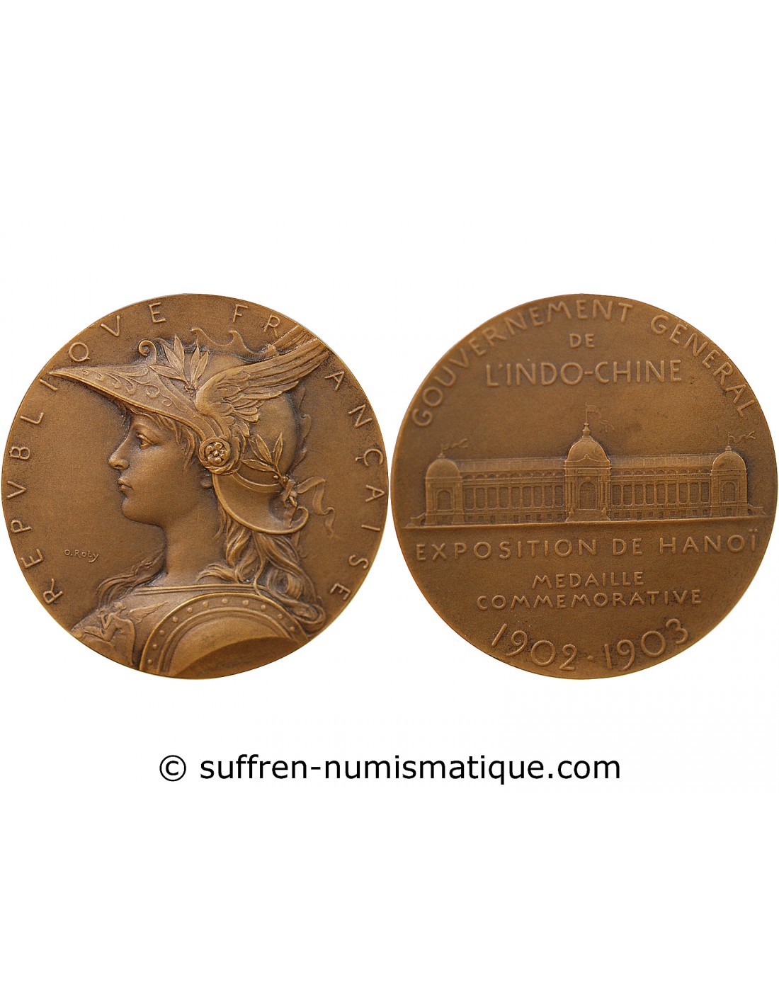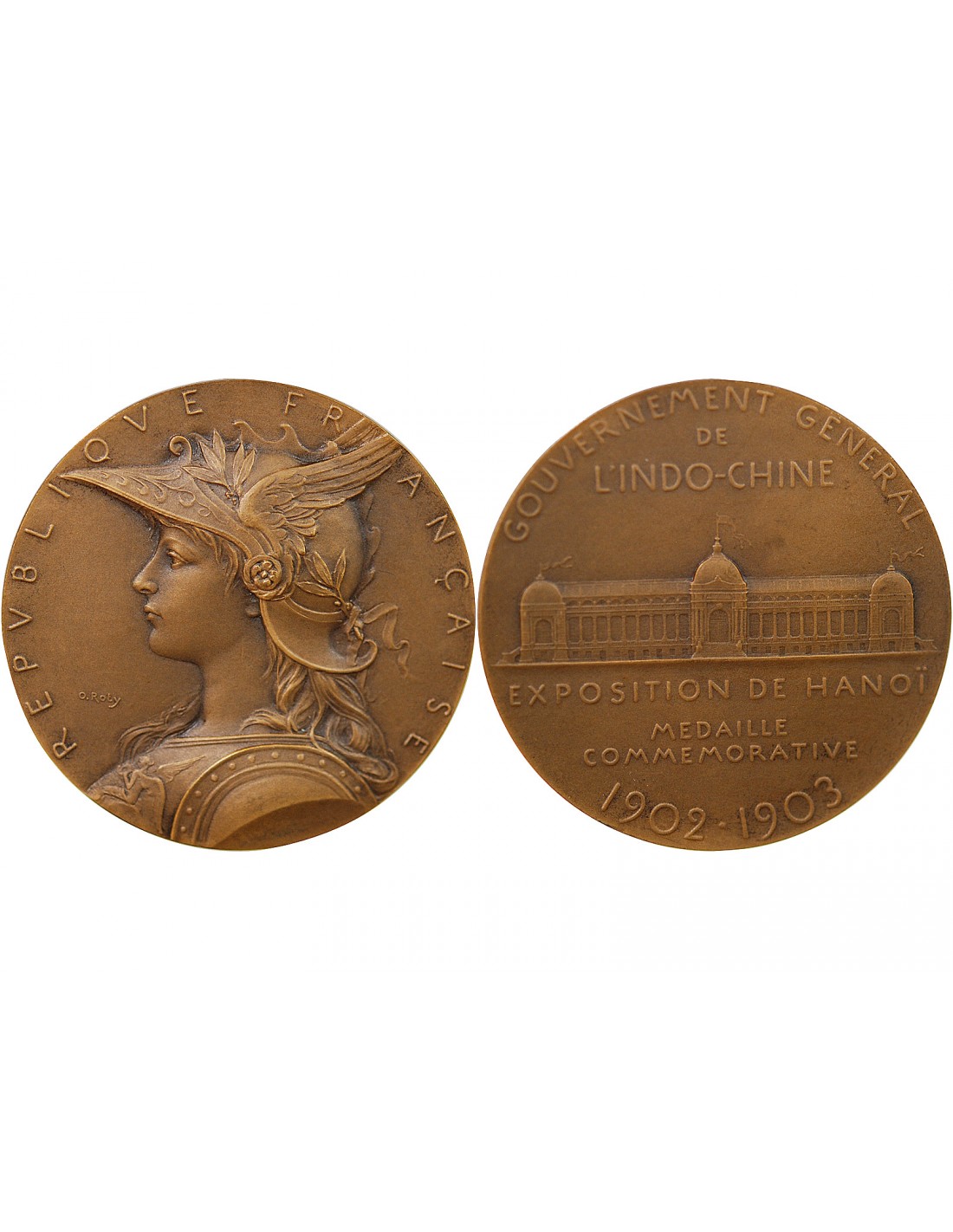 INDOCHINE, EXPOSITION DE HANOI, 1902/1903 - ECRIN ET MEDAILLE BRONZE - O. ROTY