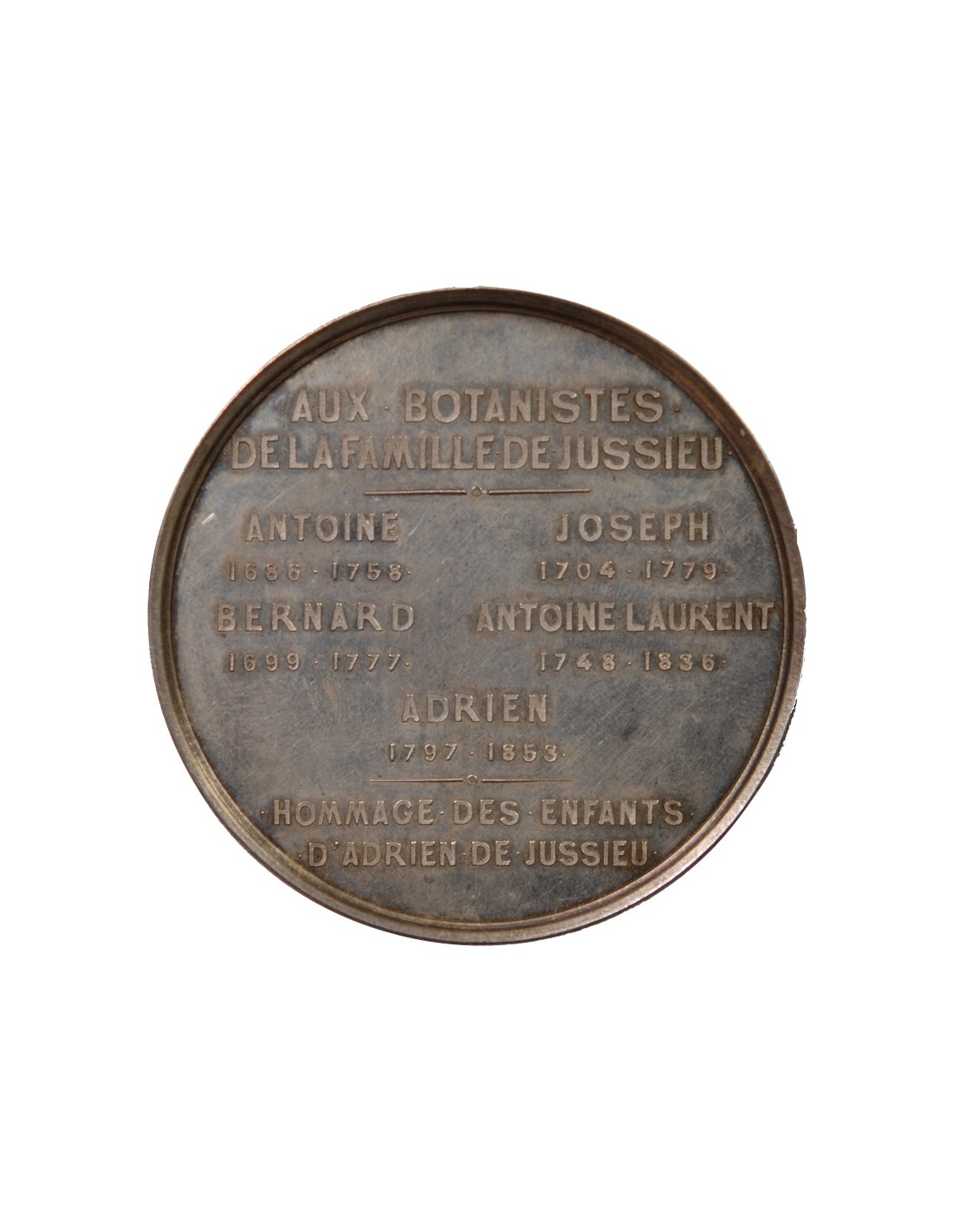 Hommage des Enfants d'Adrien Jussieu à leurs ancêtres botanistes Antoine, Bernard, Joseph et Antoine Laurent.
