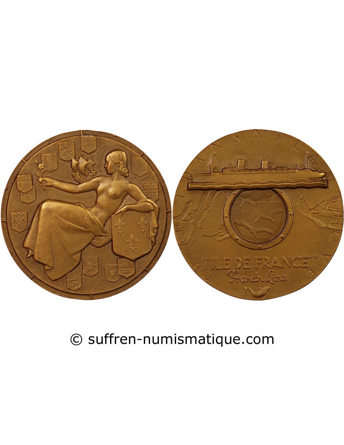 Marine - CIE GLE TRANSATLANTIQUE, PAQUEBOT "ILE DE FRANCE" - MEDAILLE BRONZE MARCEL RENARD, 1949
