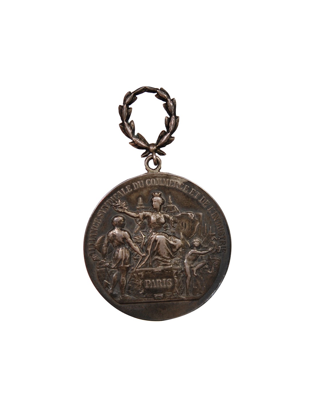 ALLIANCE SYNDICALE DU COMMERCE ET DE L'INDUSTRIE DE PARIS - MEDAILLE ARGENT, VERNON - 1911, "GROSSE F"