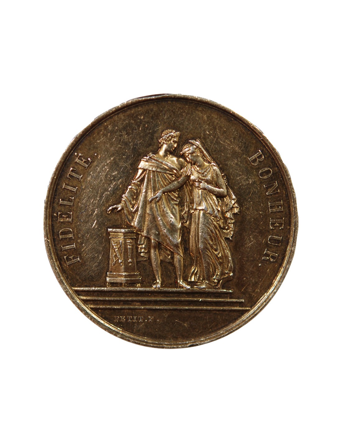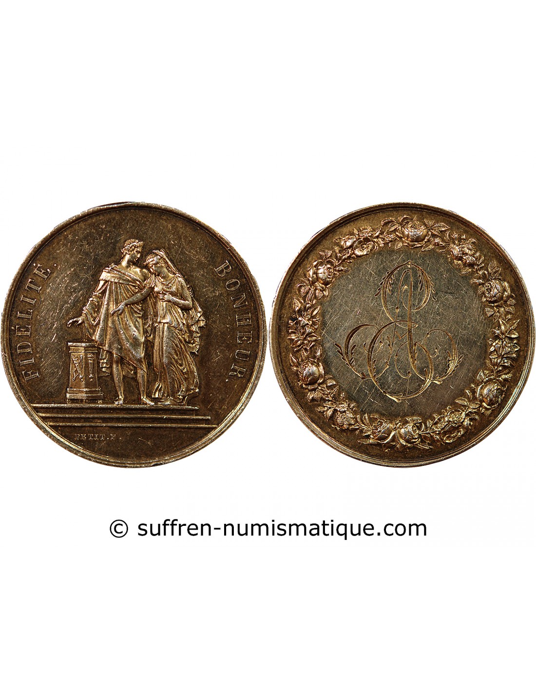 MARIAGE - MEDAILLE ARGENT DORE PETIT F. - UNION DE L. AUBRIL ET DE M. ESNOL LE 30 DECEMBRE 1884