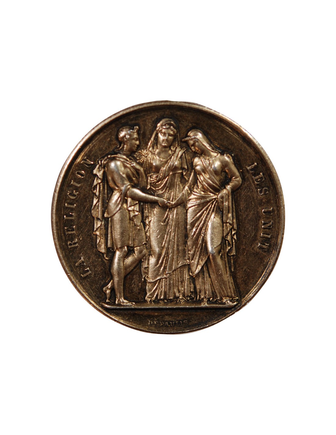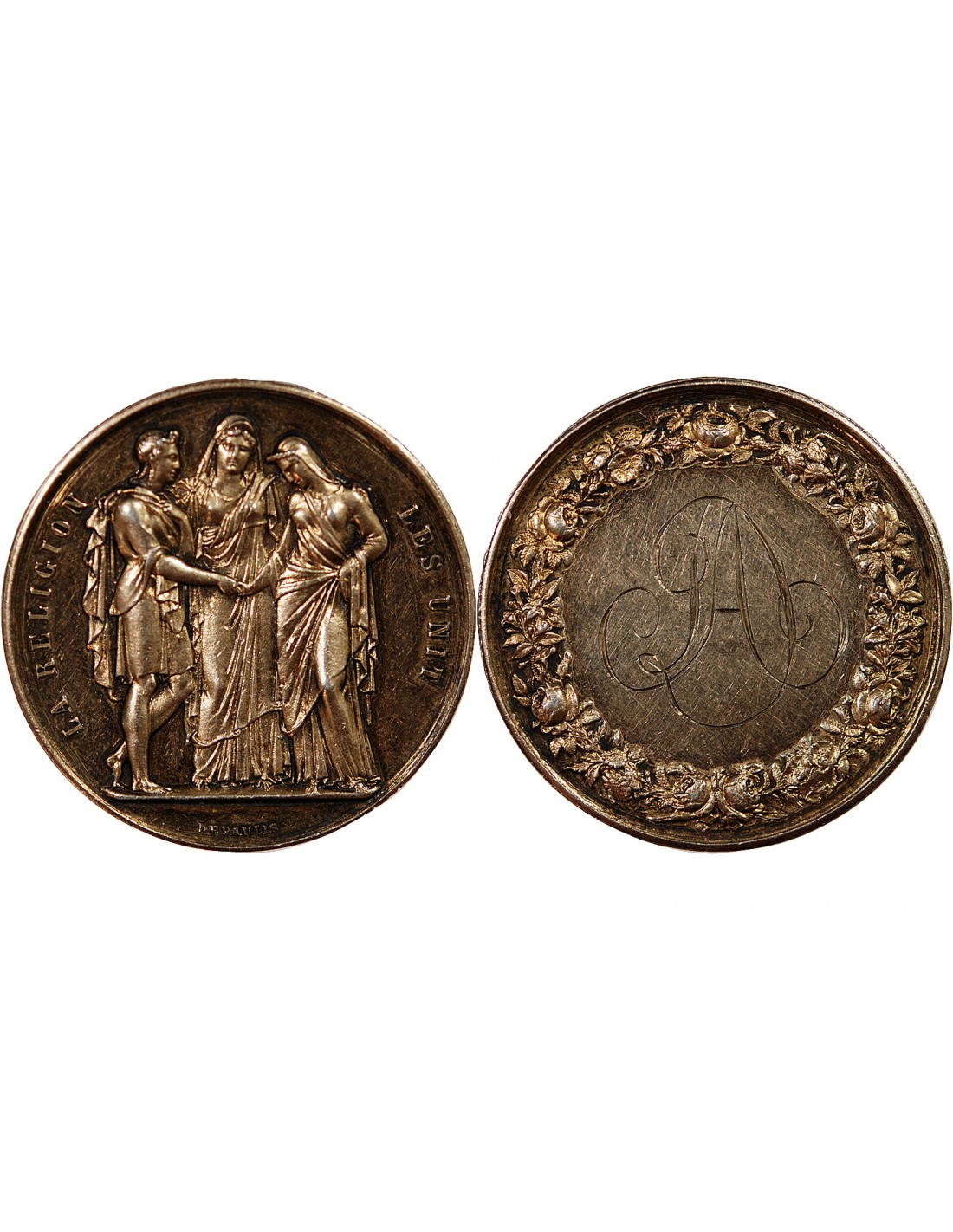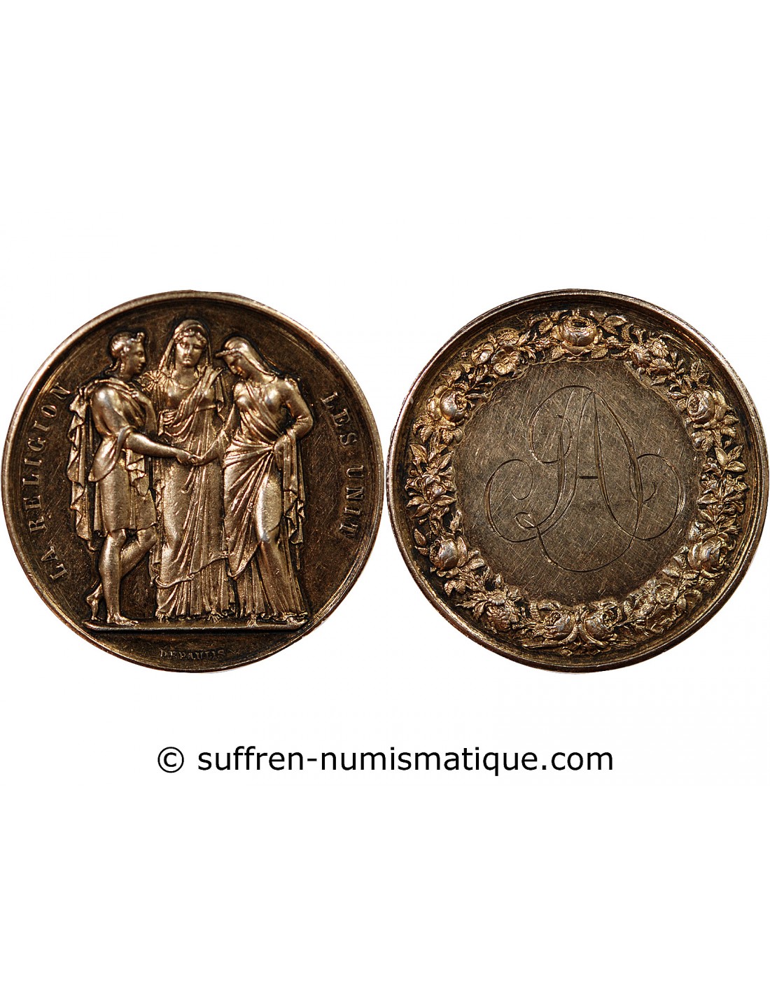 MARIAGE - MEDAILLE ARGENT DORE DEPAULIS - UNION DE A. D'HEROUVILLE ET DE M. AUBRIL LE 10 FEVRIER 1885