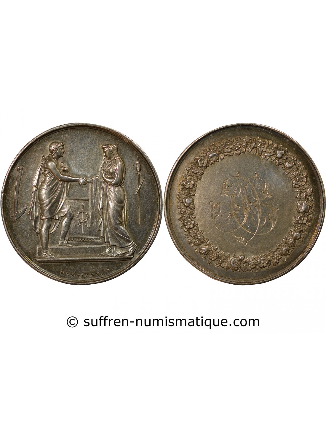 MARIAGE - MEDAILLE ARGENT MONTAGNY - UNION COTREAU / DION 1872