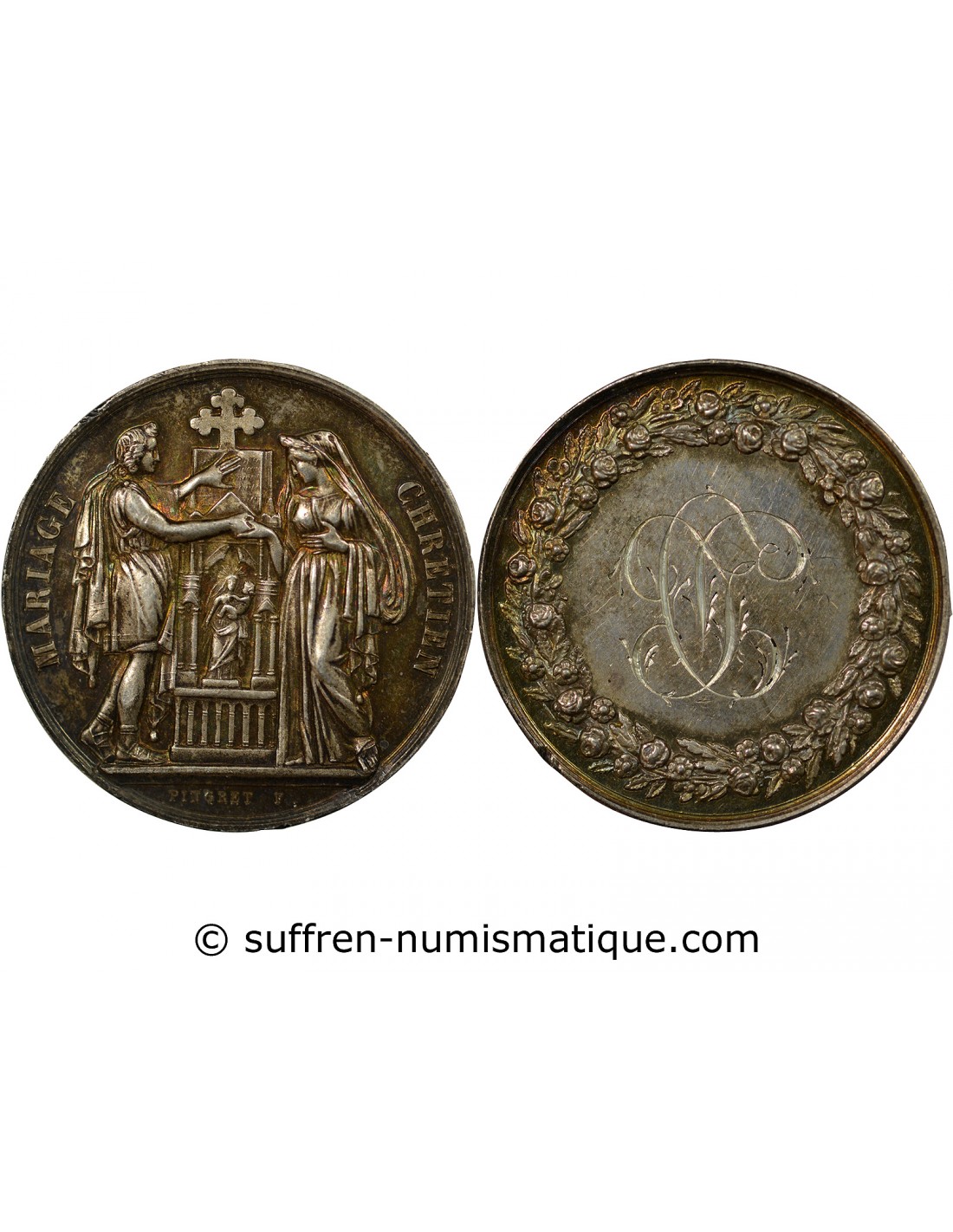 MARIAGE - MEDAILLE ARGENT PIGRET F - UNION LELOUP / DEMENGIE 1867