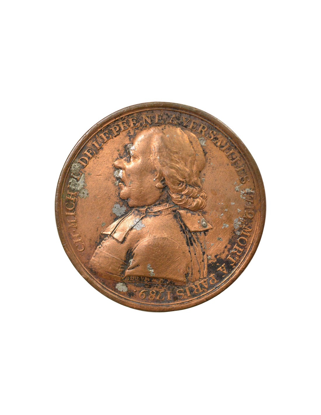 Avers : CH . MICHEL DE L’EPEE NE A VERSAILLES 1712, MORT A PARIS 1789 .