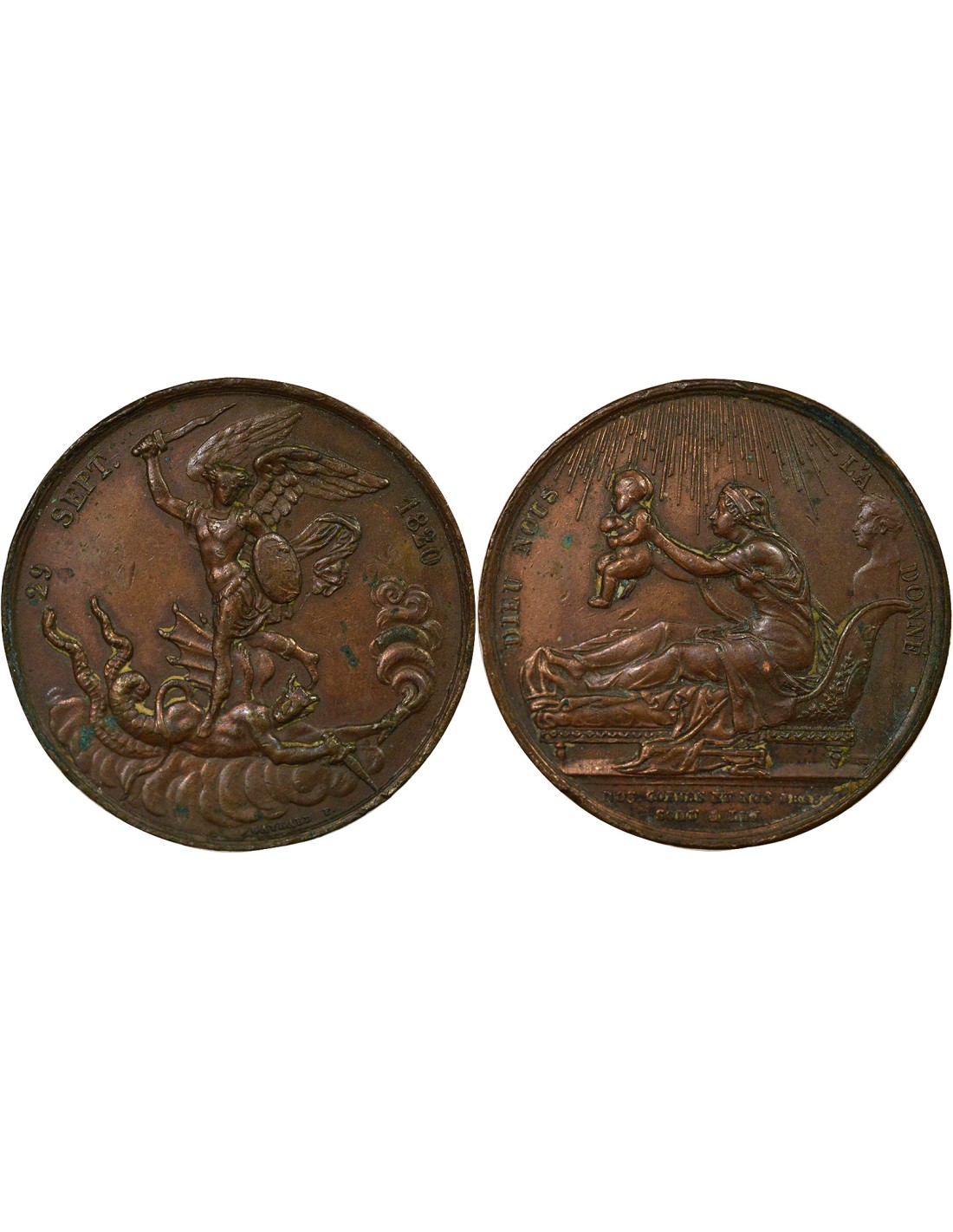 Avers : DIEU NOUS - L’A - DONNE / NOS COEURS ET NOS BRAS / SONT A LUI