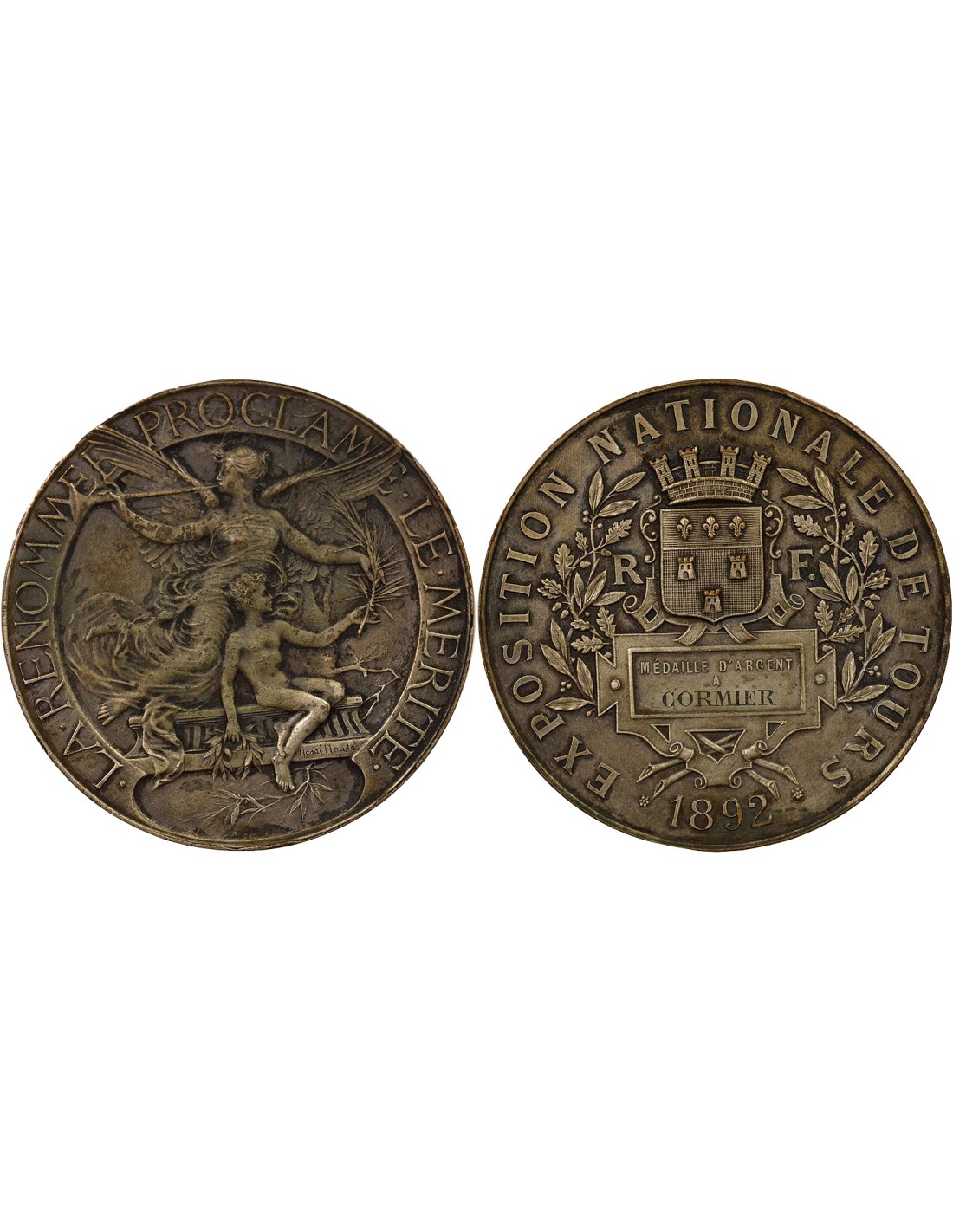 Revers : EXPOSITION NATIONALE DE TOURS / * 1892 * / MEDAILLE D'ARGENT / A / CORMIER