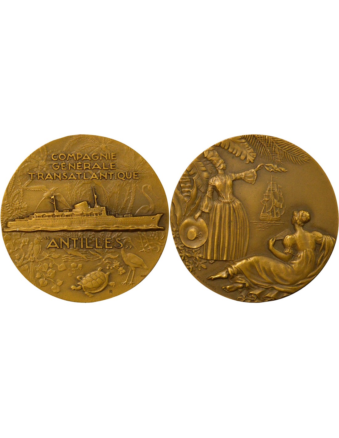 Revers : COMPAGNIE / GENERALE / TRANSATLANTIQUE / "ANTILLES"