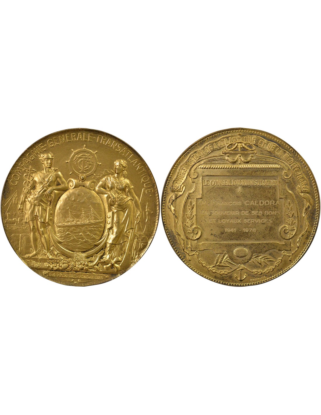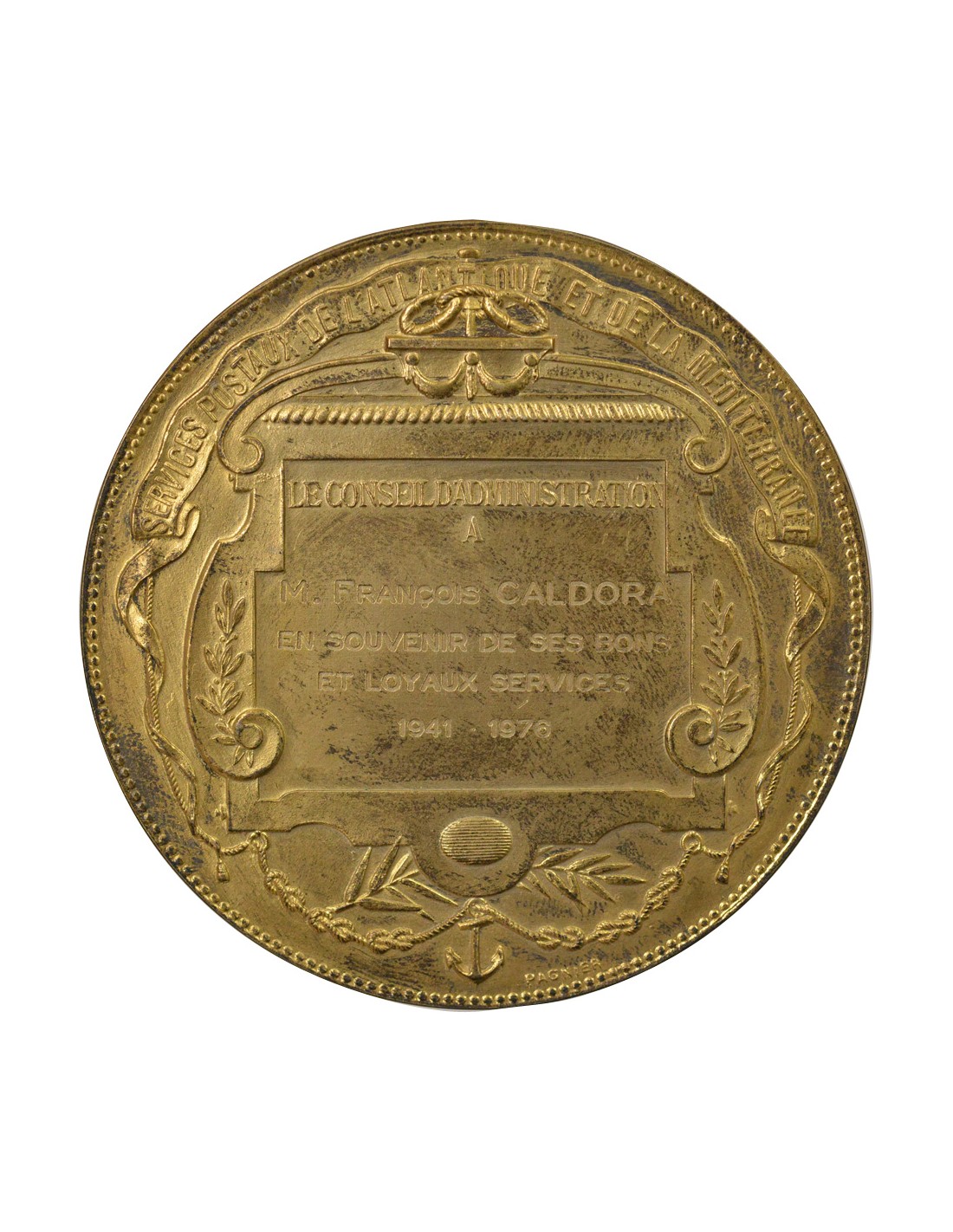 Revers : SERVICES POSTAUX DE L'ATLANTIQUE ET DE LA MEDITERRANEE / LE CONSEIL D'ADMINISTRATION / A / M . FRANCOIS CALDORA / EN SOUVENIR DE SES BONS / ET LOYAUX SERVICES / 1941 1976