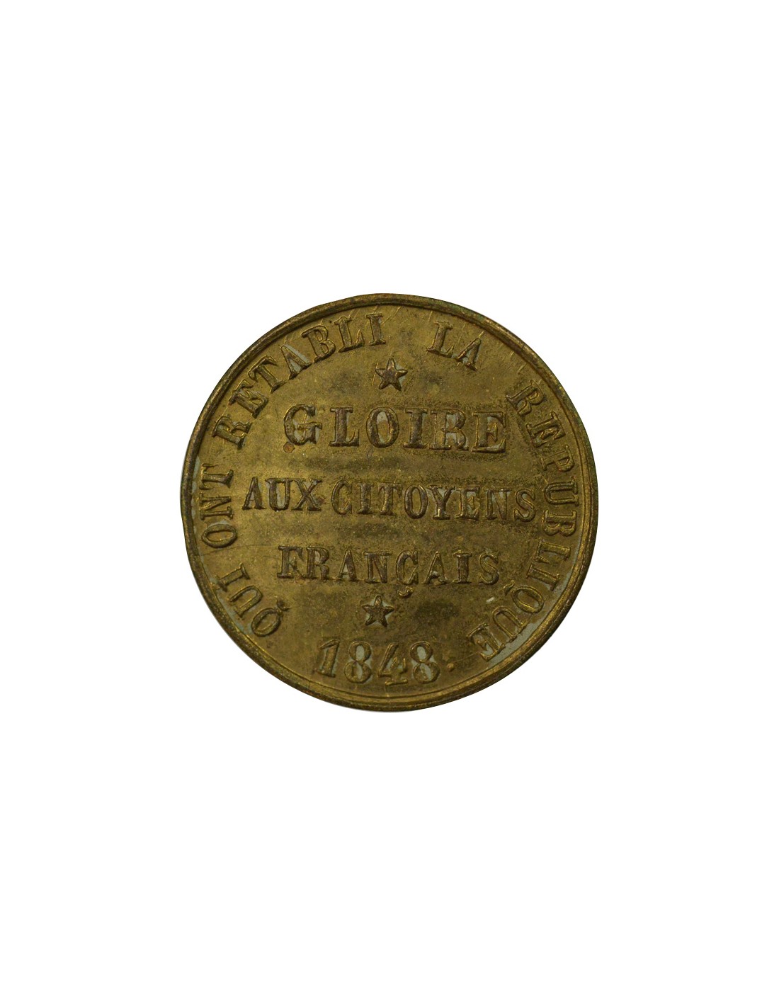 Revers : GLOIRE / AUX CITOYENS / FRANCAIS / QUI ONT RETABLI LA REPUBLIQUE / 1848 .