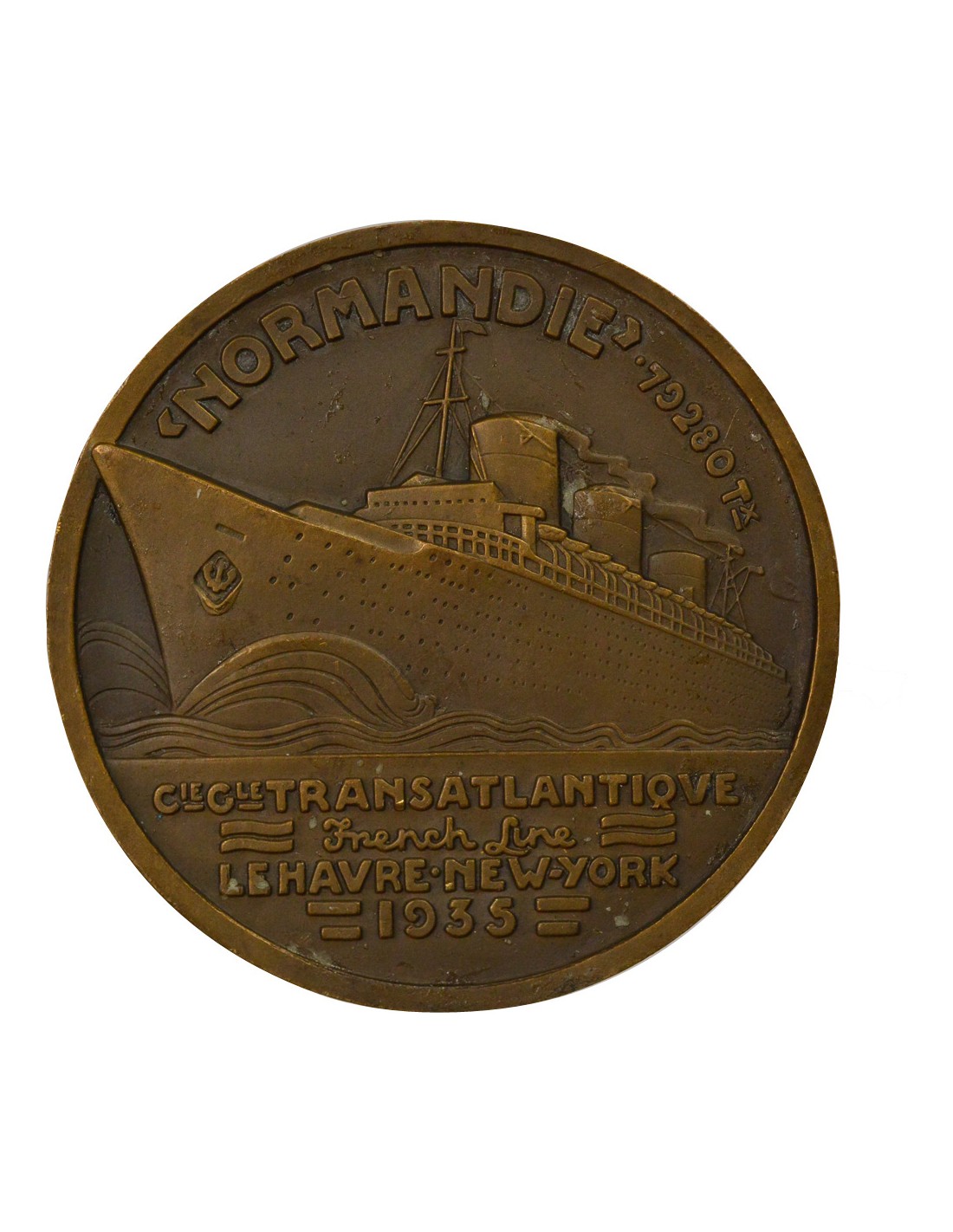 Revers : ‘NORMANDIE’ . 79280 TX / CIE. GLE. TRANSATLANTIQVE / FRENCH LINE / LE HAVRE . NEW-YORK / 1935