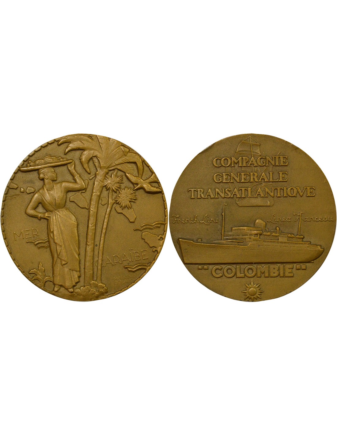Revers : COMPAGNIE / GENERALE / TRANSATLANTIQUE / FRENCH LINE - LINEA FRANCESA // "COLOMBIE"