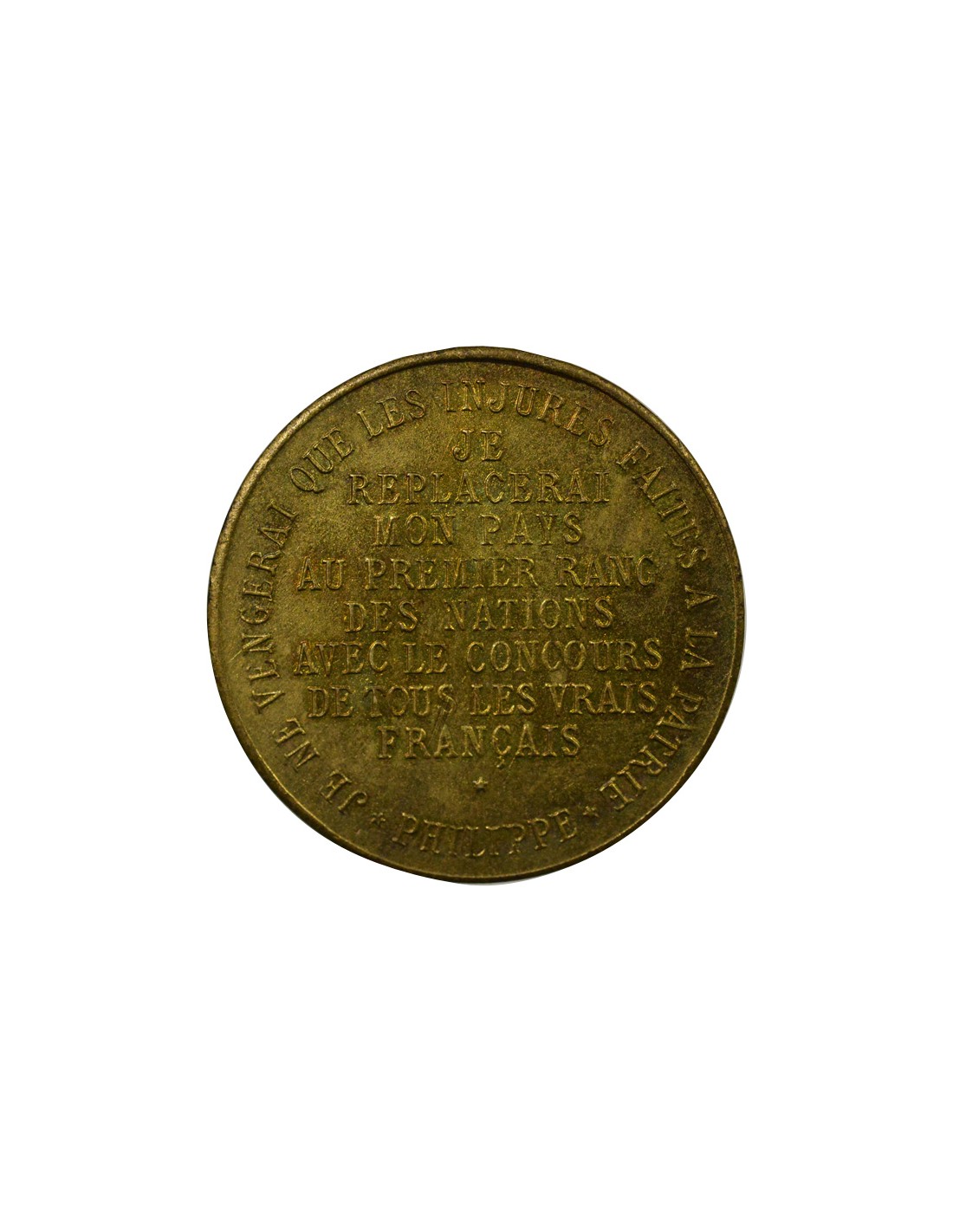 Revers : * JE NE VENGERAI QUE LES INJURES FAITES A LA PATRIE / * PHILIPPE * / JE / REPLACERAI / MON PAYS / AU PREMIER RANG / DES NATIONS / AVEC LE CONCOURS / DE TOUS LES VRAIS / FRANÇAIS / *