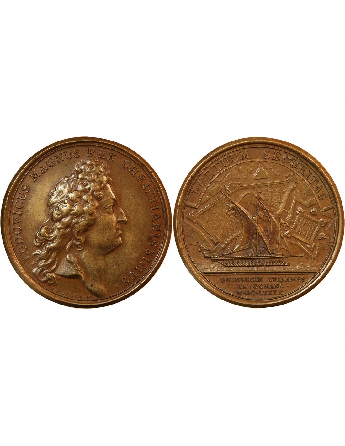 France Louis XIV - Medaille Mauger 1690 - Mise À Flot De Quinze Galères