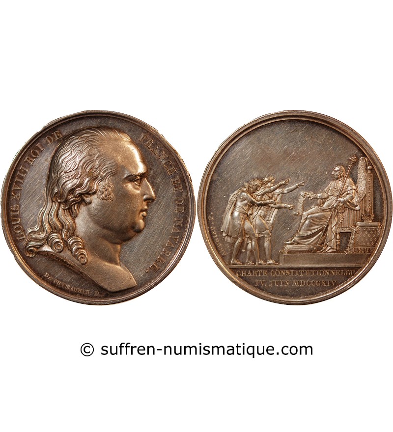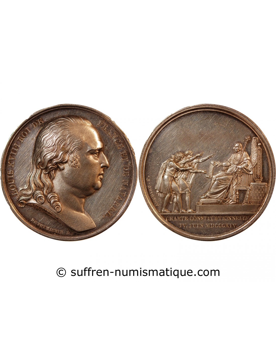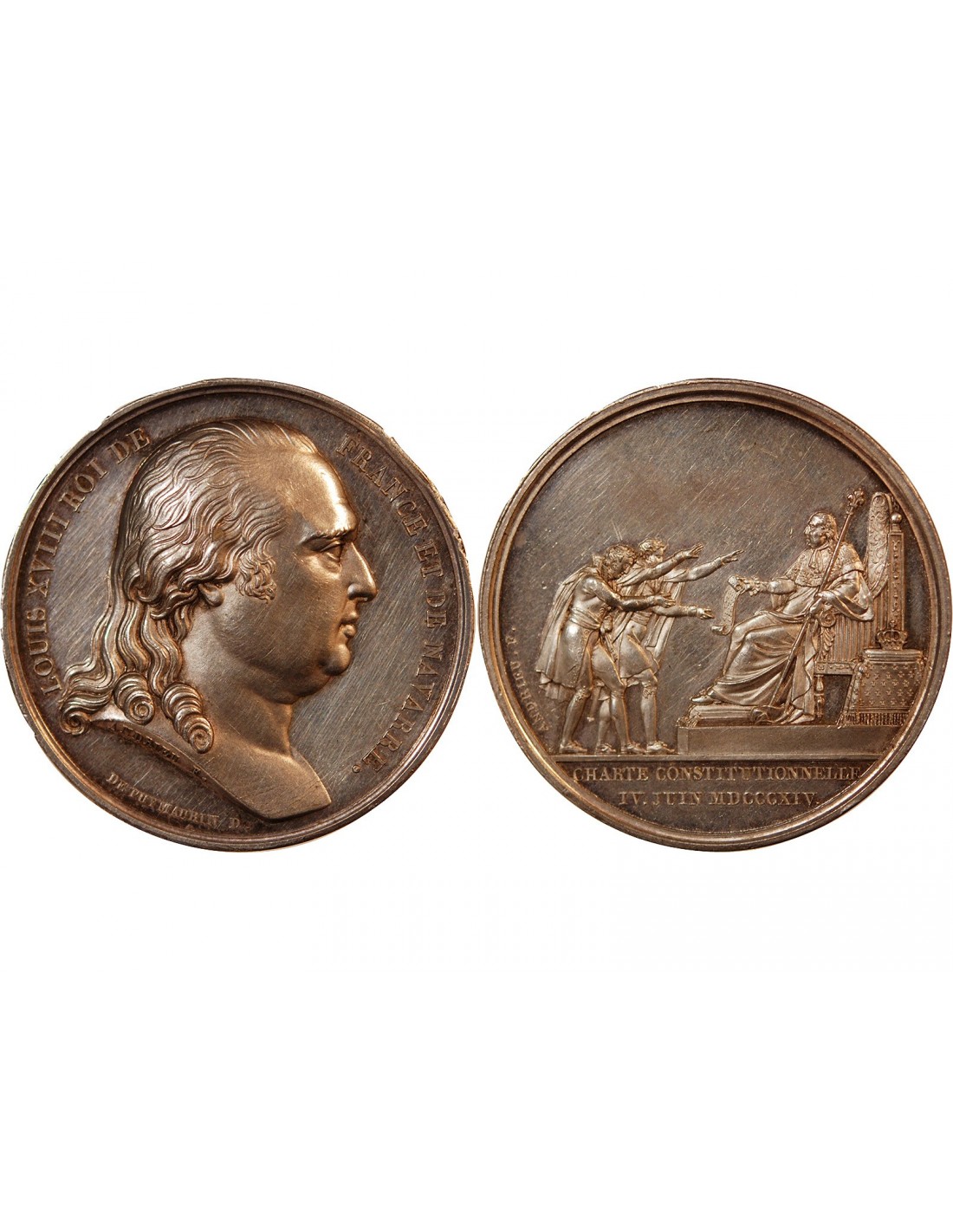 France Louis XVIII - Medaille Argent, Charte Constitutionnelle - 1814