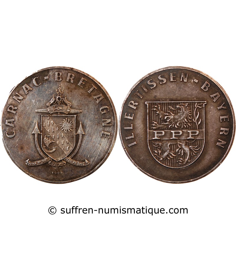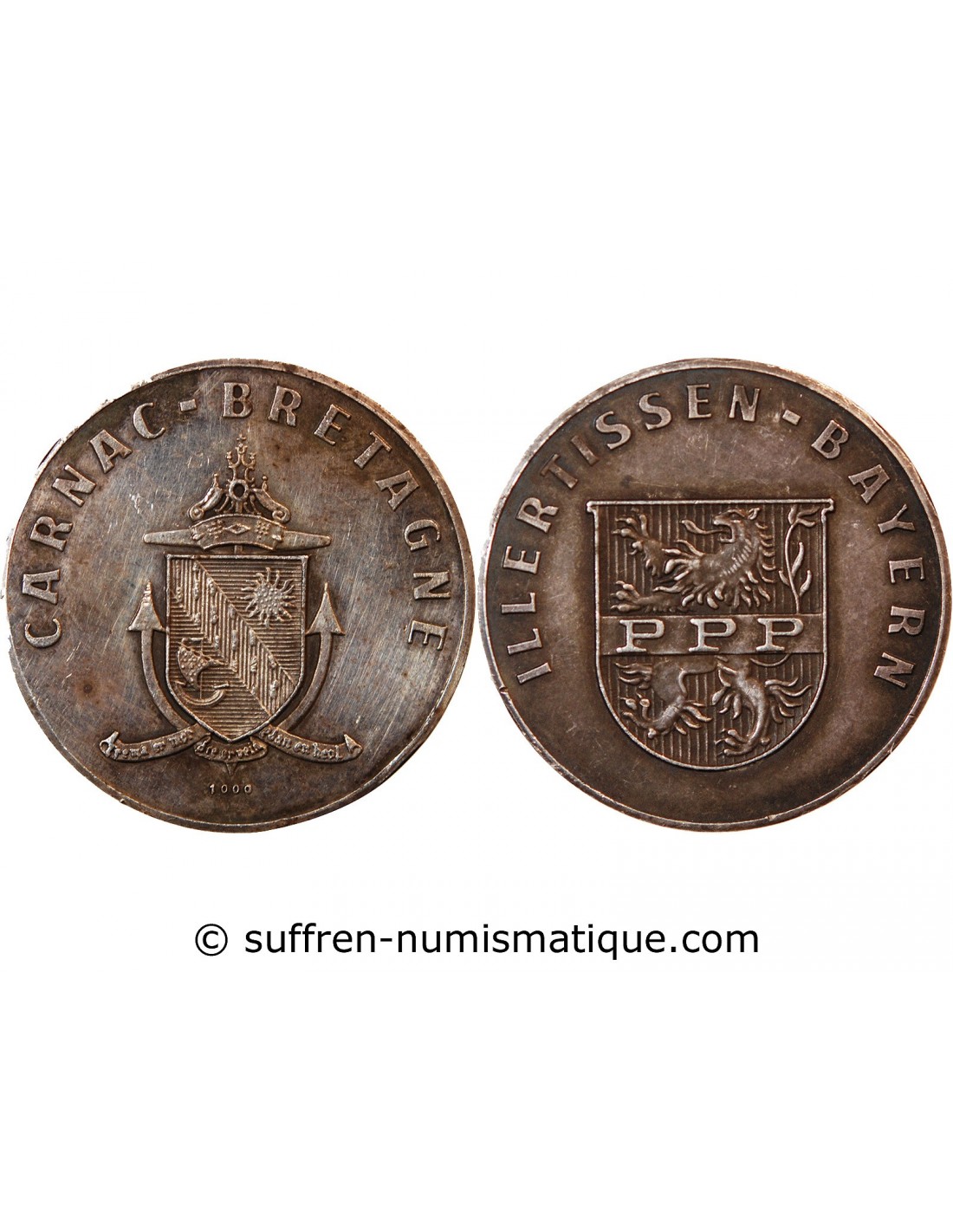 MEDAILLE DE JUMELAGE ARGENT - CARNAC EN BRETAGNE / ILLERTISSEN EN BAVIERE