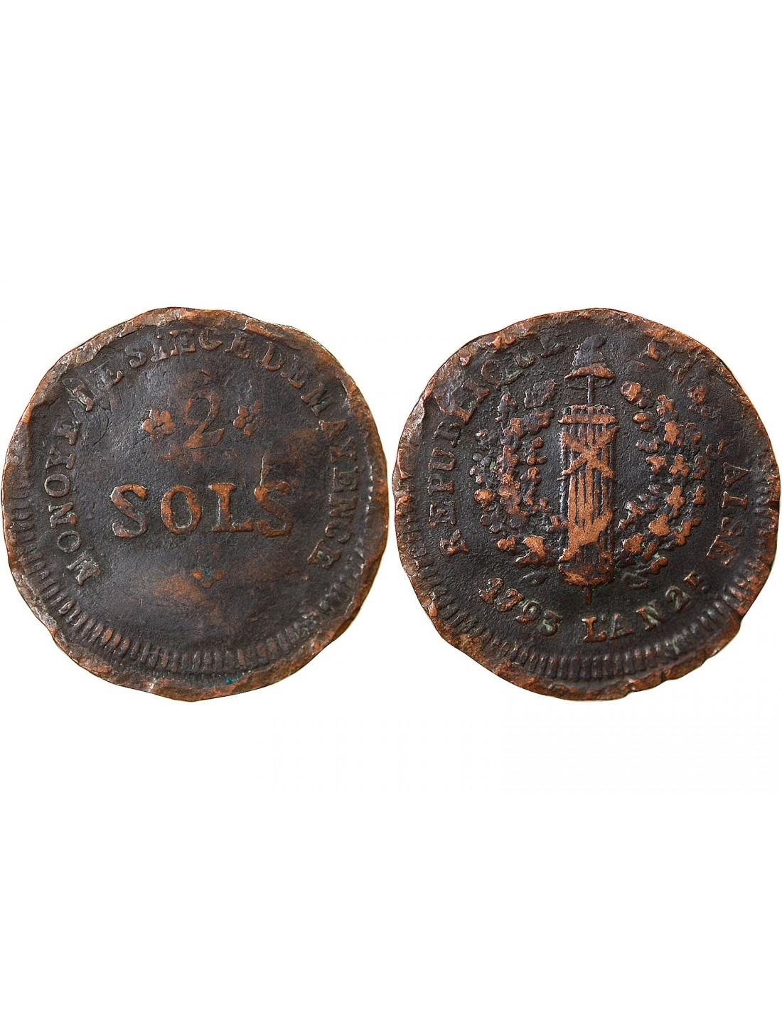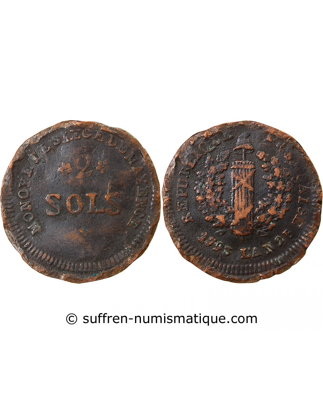 CONVENTION, SIEGE DE MAYENCE - 2 SOLS 1793