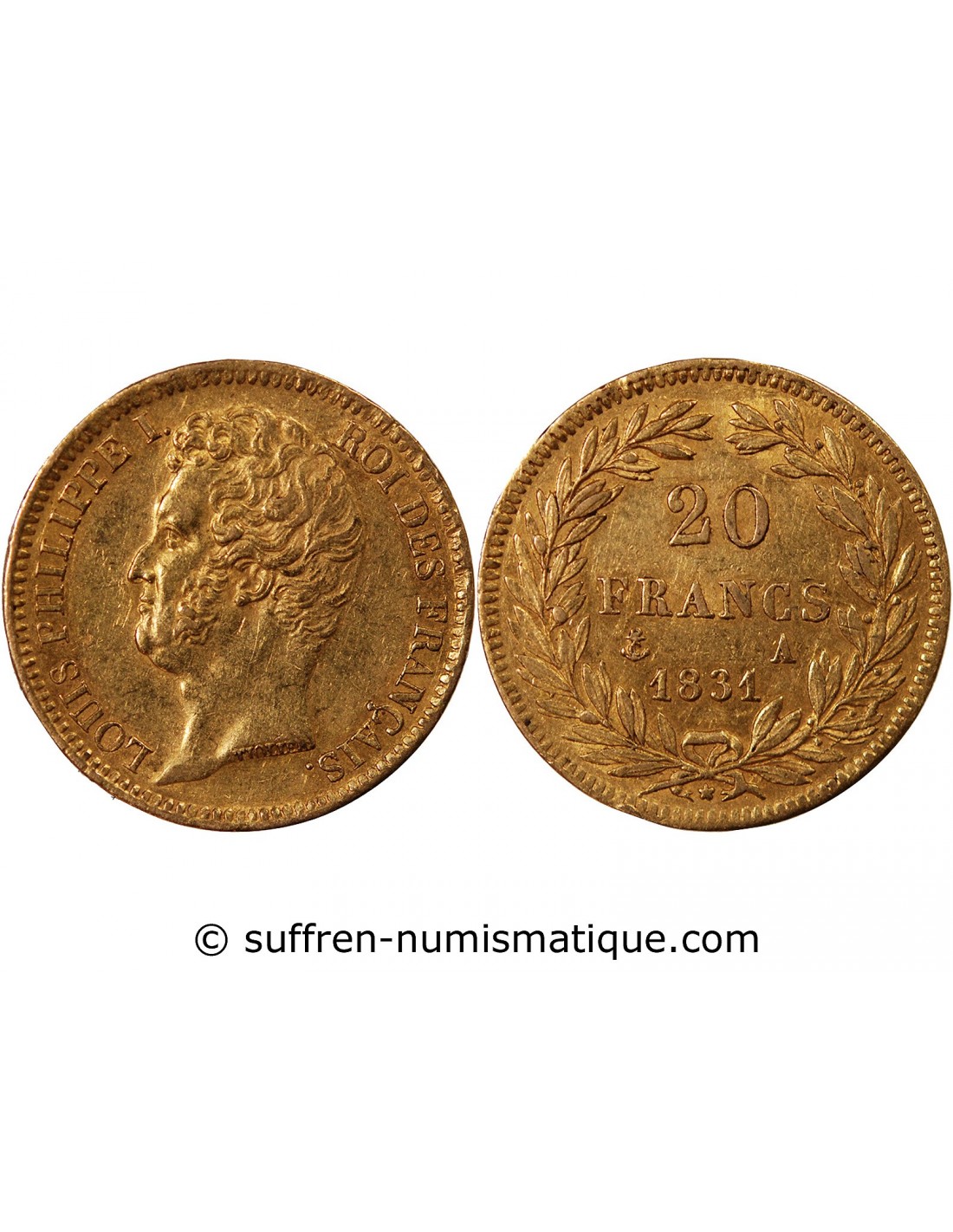 "LOUIS PHILIPPE? Ier - 20 FRANCS OR 1831 A PARIS Tête Nue Tranche en Relief"?"