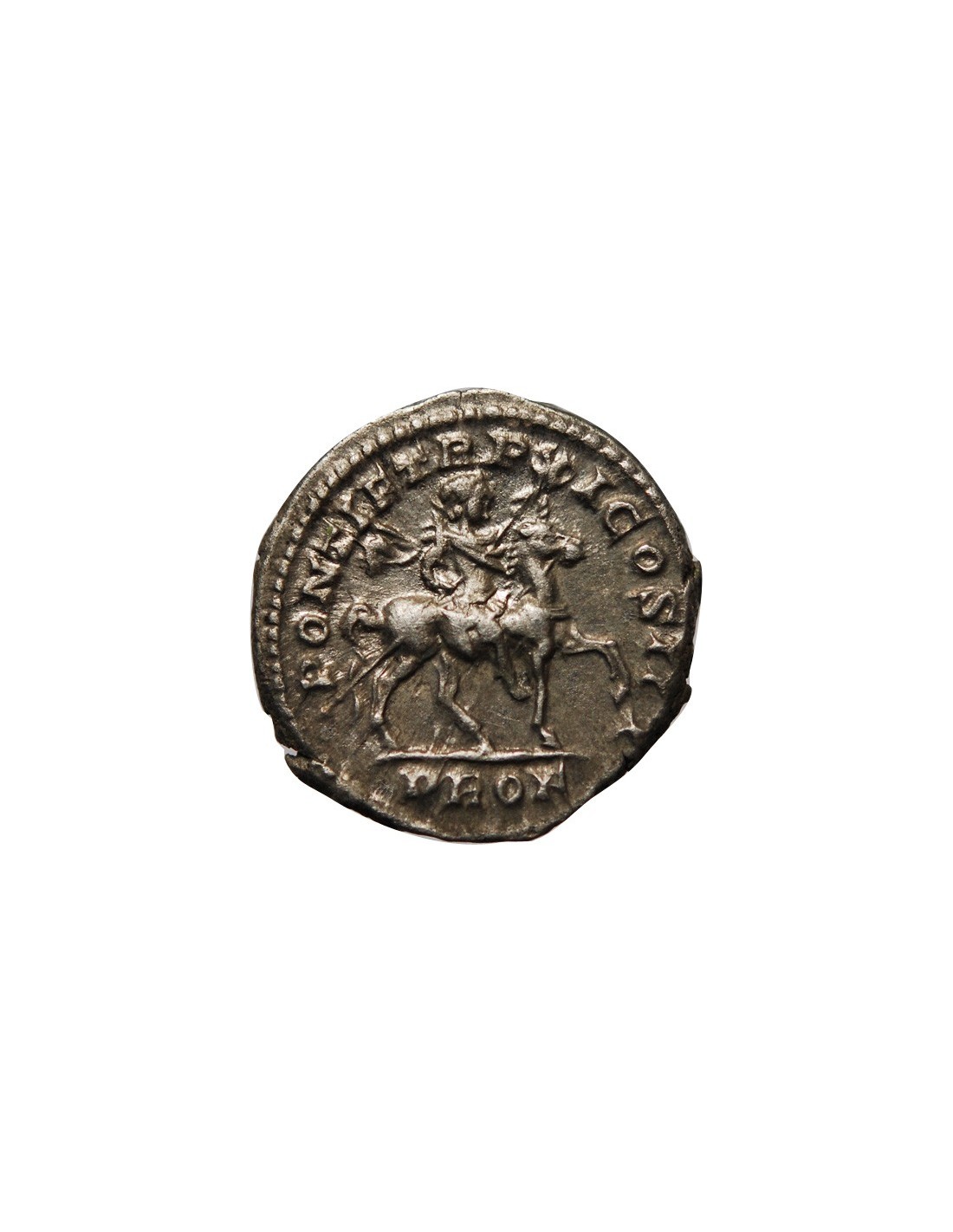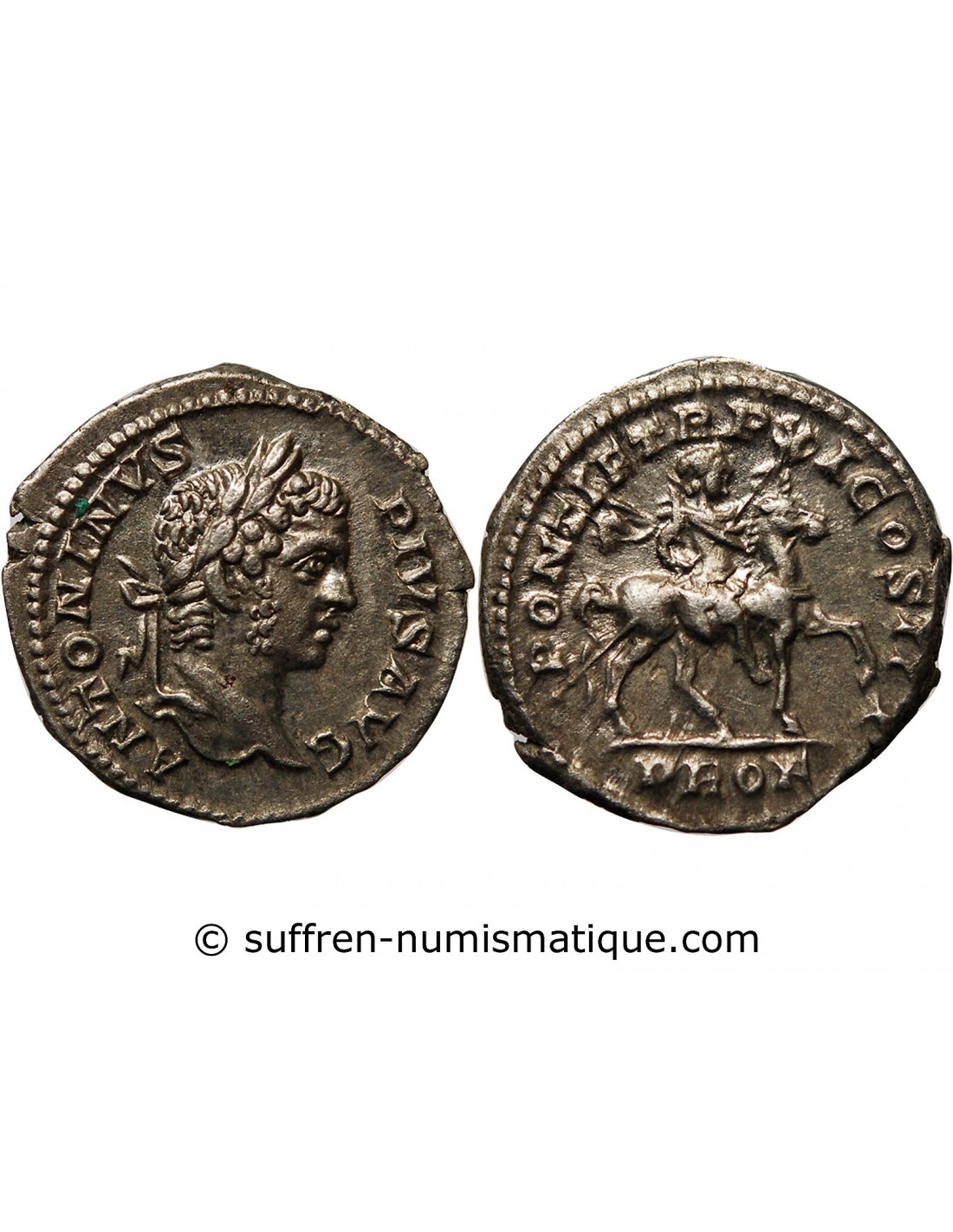Ce denier a été frappé lors d'une émission spéciale au début de l'année 208 célébrant le départ (profectio) de Septime Sévère, de Caracalla et de Géta pour la célèbre campagne militaire de Bretagne. (le Royaume-Uni actuel).