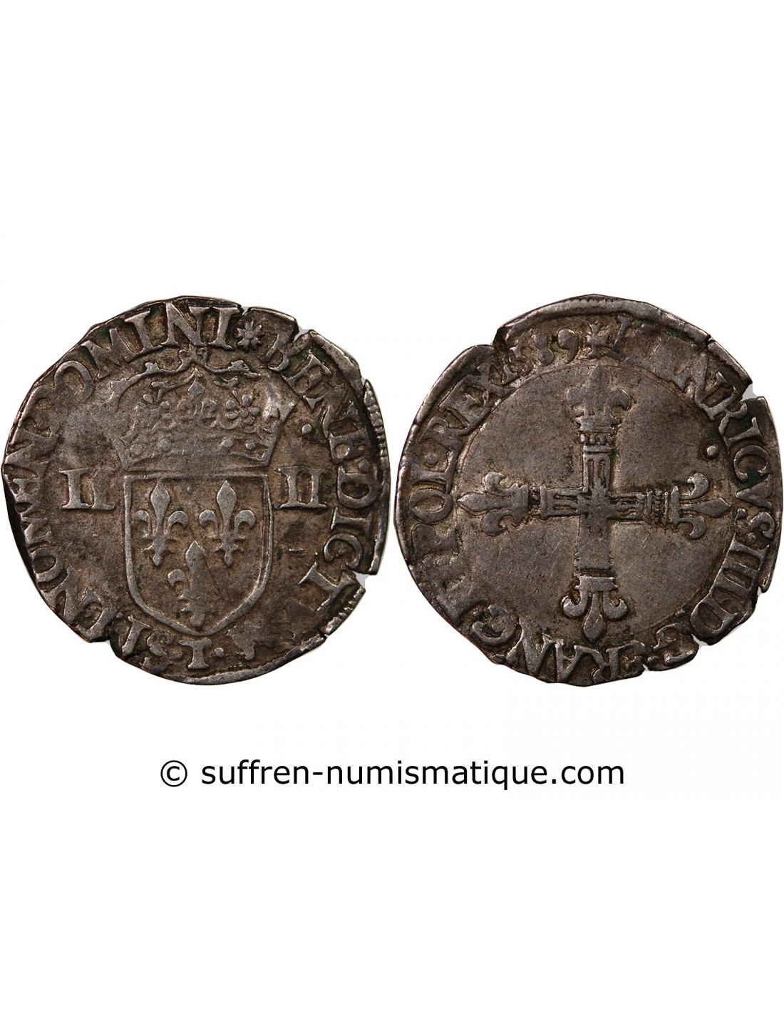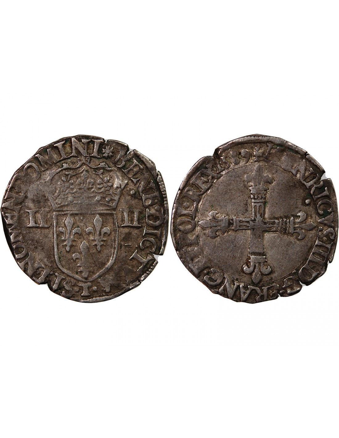 HENRI III - 1/4 ECU ARGENT 1589 T NANTES