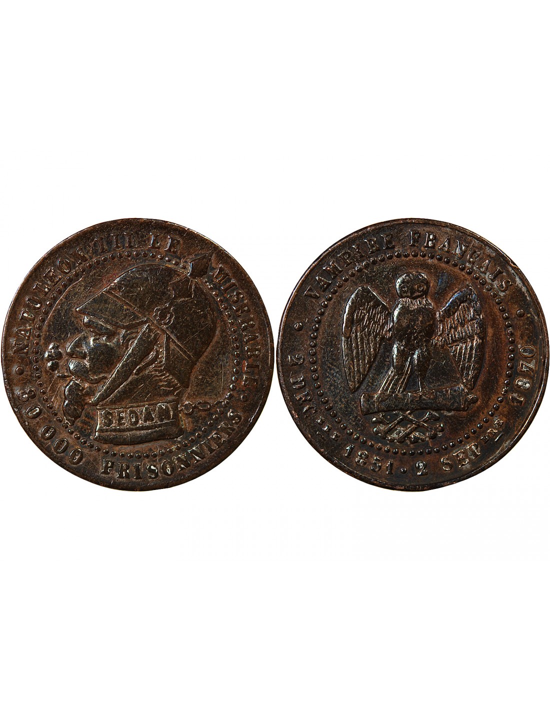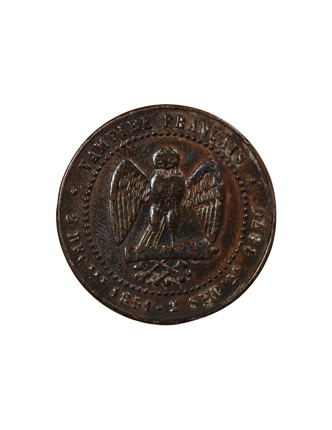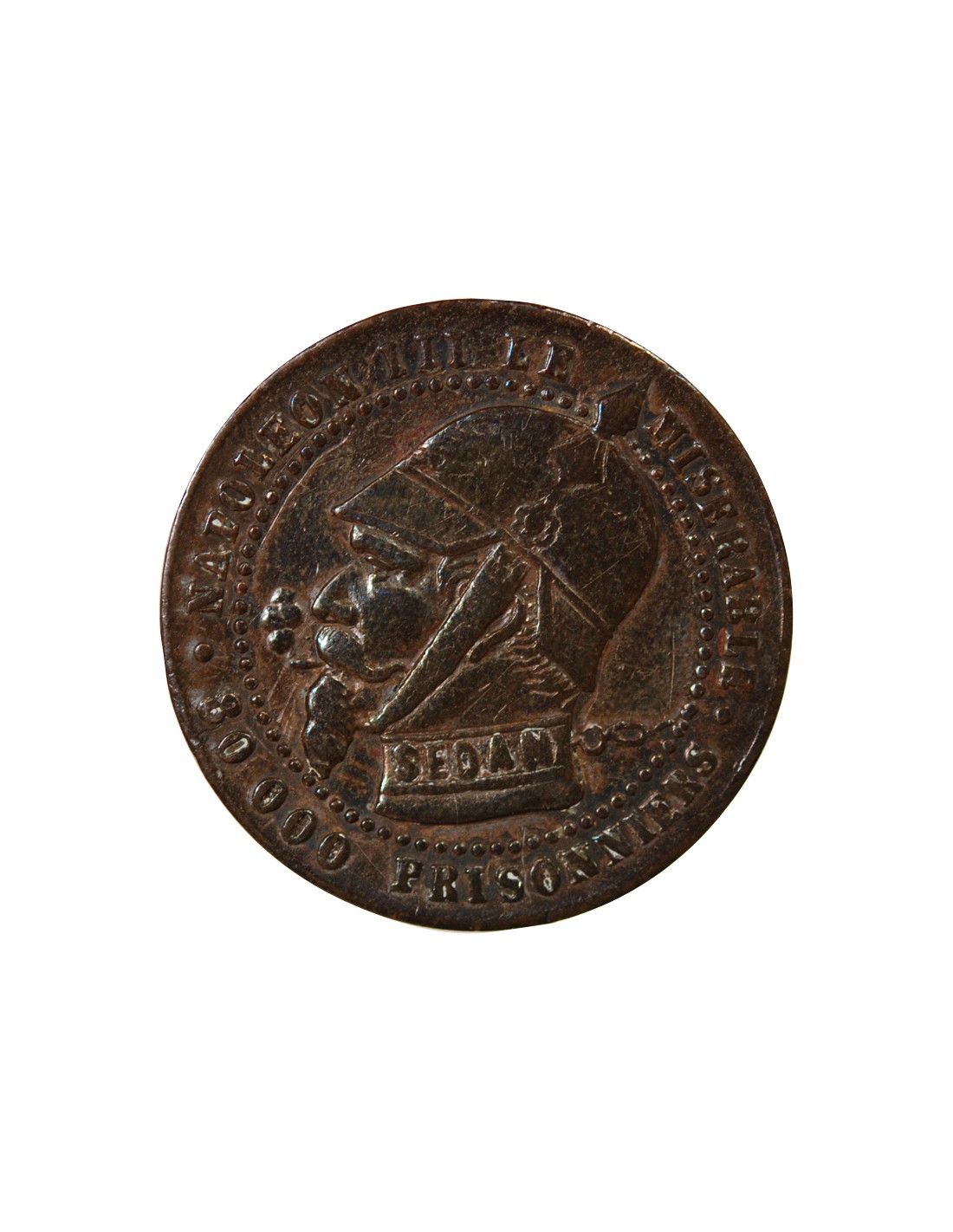 Après la défaite de Napoléon III à Sedan, de nombreuses pièces ont été émises pour ridiculiser l'empereur français car jugé responsable des 80.000 prisonniers, Napoléon III est affublé d’un casque à pointe et l’aigle impérial est devenu un hibou.